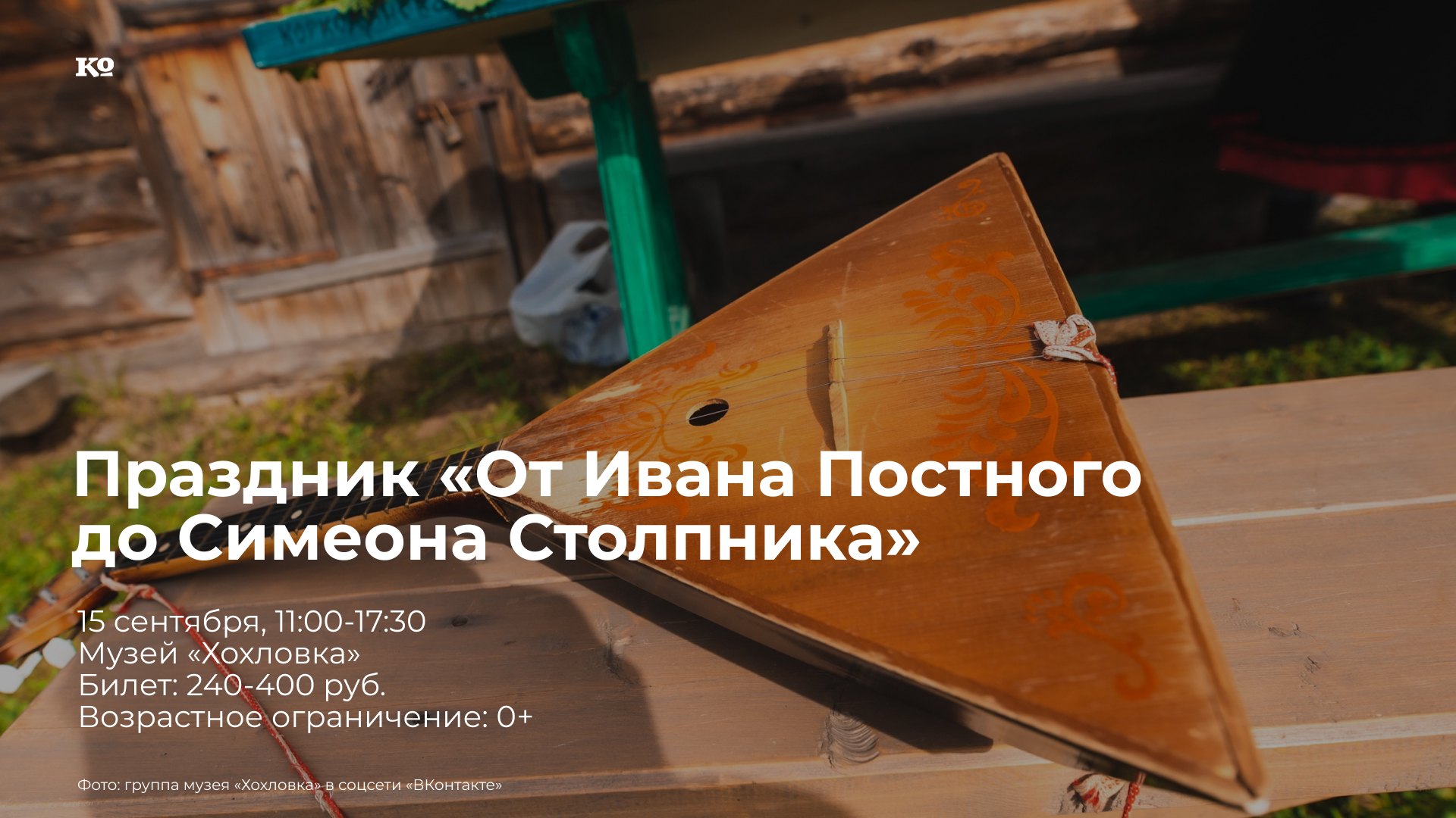 В Прикамье продолжается фестиваль «Осень в Хохловке», объединивший несколько фольклорных праздников. В это воскресенье будут отмечать праздник «От Ивана Постного до Симеона Столпника». Он отражает традиции следующих дат народного календаря: 11 сентября — Праздник Усекновения главы Иоанна Крестителя, 13 сентября — Куприян, 14 сентября — Симеон Столпник. В программе: рассказ о традициях осенних праздников, выступление певческих коллективов и совместное пение с гостями «Хохловки» старообрядческих духовных стихов, а также обряд «завивания бородки» из последних колосьев, частушки, кадрили, игры для детей, мастер-классы по прядению, ткачеству и приготовлению традиционных блюд из картофеля, мужские состязания и женские «проголосные» песни.