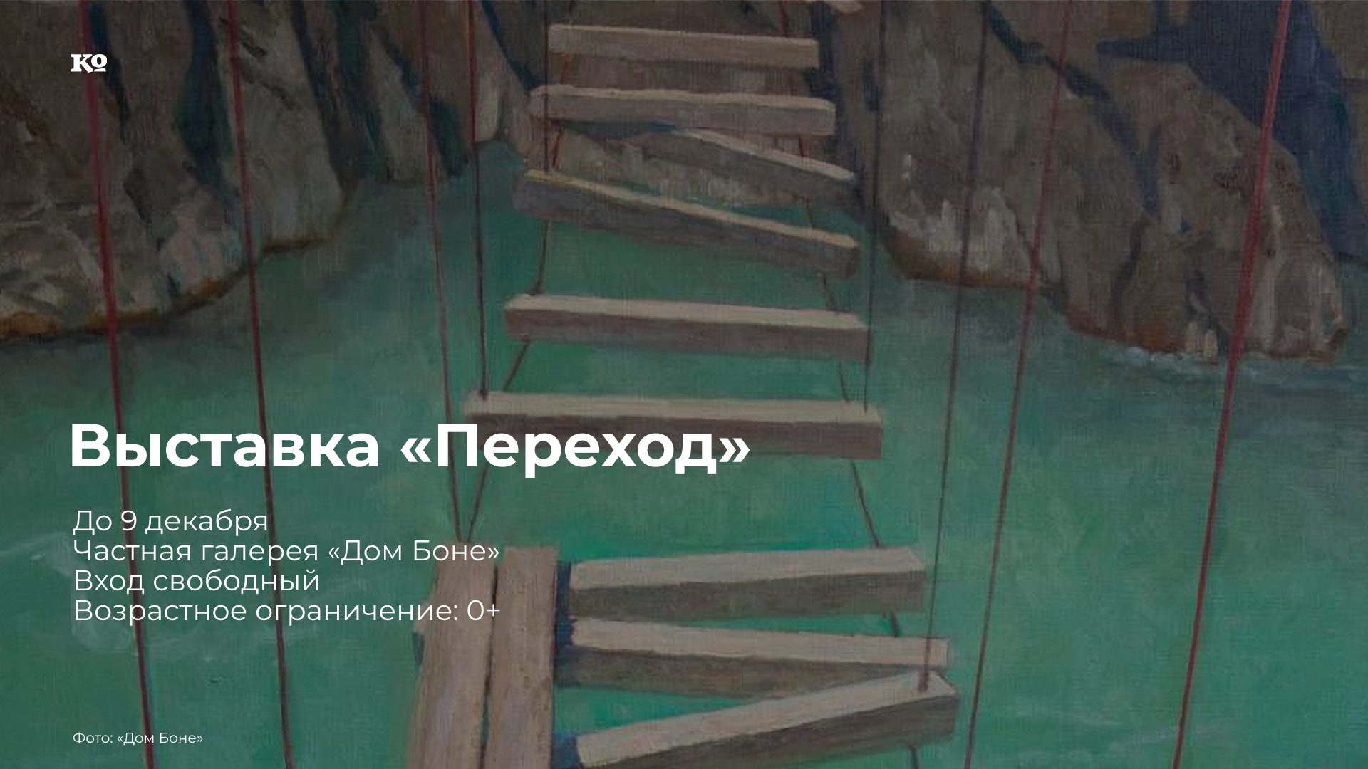 В частной галерее «Дом Боне» на этой неделе открылась персональная выставка пермской художницы Ирины Пьянковой «Переход». Человека тянет к приключениям, и это тесно связано с желанием воссоединиться с незыблемостью и величием природы, откуда человечество начало свой путь. Часто хочется оставить цивилизацию и ощутить жизнь с другой стороны. «...Удаляясь от условий общества и приближаясь к природе, мы невольно становимся детьми; всё приобретённое отпадает от души, и она делается вновь такою, какой была некогда и, верно, будет когда-нибудь опять...». Работы Ирины Пьянковой оставляют целое поле для экзистенциальных размышлений: кто я — целая вселенная или часть огромного раздолья среди растекающихся и возвышающихся форм и фактур природы?