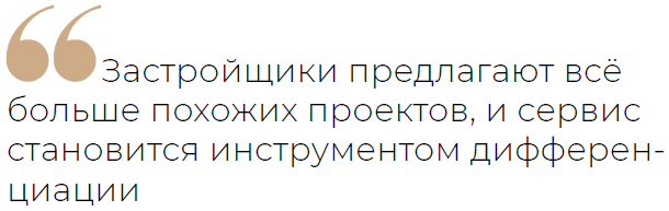 Как отмечает директор агентства недвижимости «Этажи СОТА Пермь» Дмитрий Ончуров, застройщики предлагают всё больше похожих проектов, и сервис становится инструментом дифференциации. По его мнению, уровень и разнообразие сервисов играют ключевую роль при выборе покупателями жилья. Покупая квартиру или дом, они хотят получить не просто квадратные метры, а удобство, безопасность и комфорт.
