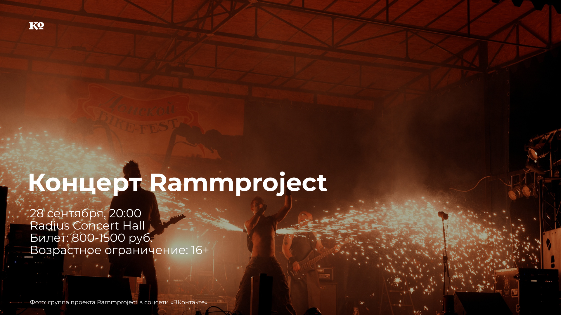 Концерт, который в мельчайших деталях воссоздаст звучание легендарных хитов Rammstein и окунёт в атмосферу стадионных концертов. Sonne, Du hast, Ich will, Engel и другие песни оживут в исполнении сочинского проекта Rammproject. Зрителей ждут два часа любимых песен немецкой металл-группы, детально проработанный звук со всеми нюансами «Раммов», включая оригинальные синты, неотличимый от Тиля голос и яркое шоу со спецэффектами.