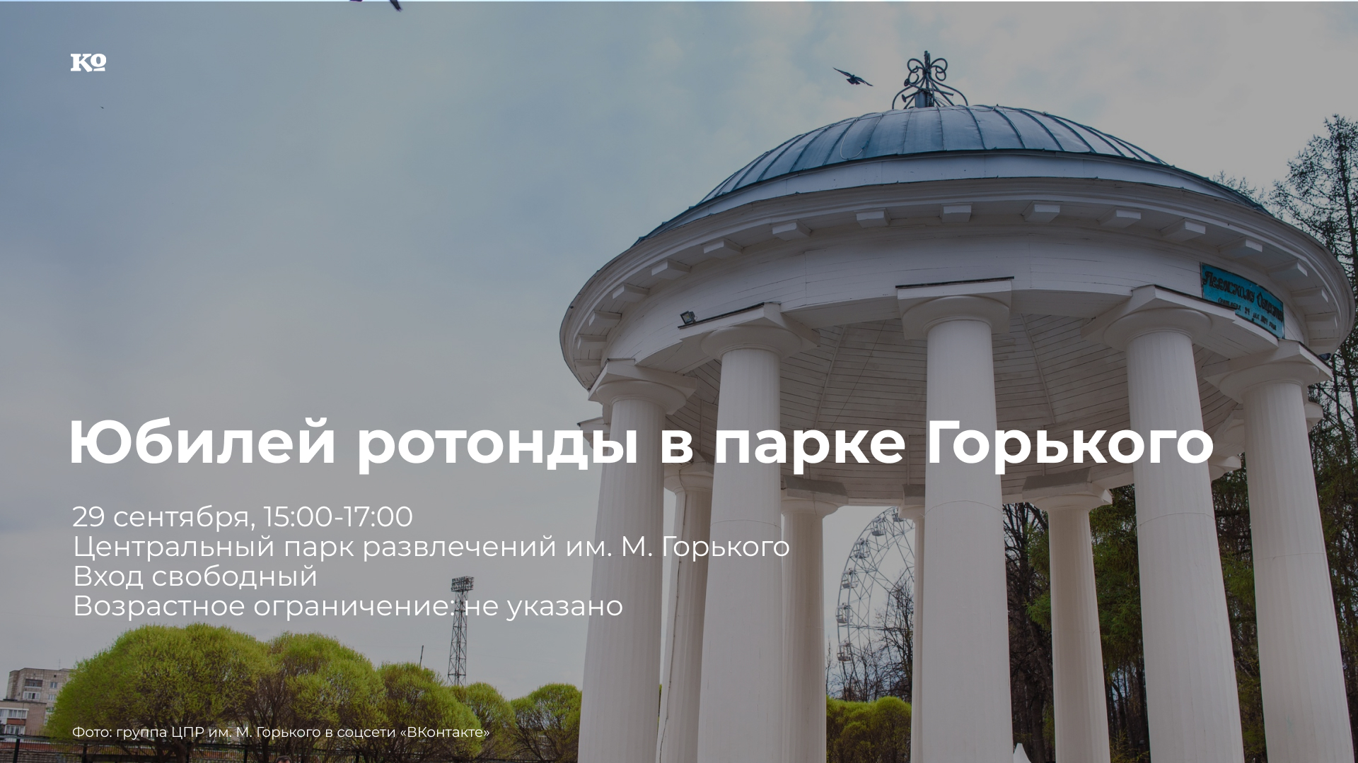 Пермской ротонде в парке им. М. Горького в этом году исполняется 200 лет. Эта белая изящная постройка является самой старшей ротондой в городе. Её построили в 1824 году к приезду императора Александра I. Юбилей ротонды решено отметить большим праздником, на котором будет воссоздана атмосфера XIX века. Каждый гость парка сможет принять участие в торжественном шествии, получить удовольствие от бала-приёма в честь императора, насладиться концертом живой музыки и ярким дефиле свадебных и вечерних платьев. Также атмосферу той эпохи помогут создать номера театра танца «Однажды», живые статуи театра Custodes и личный конвой Александра I.