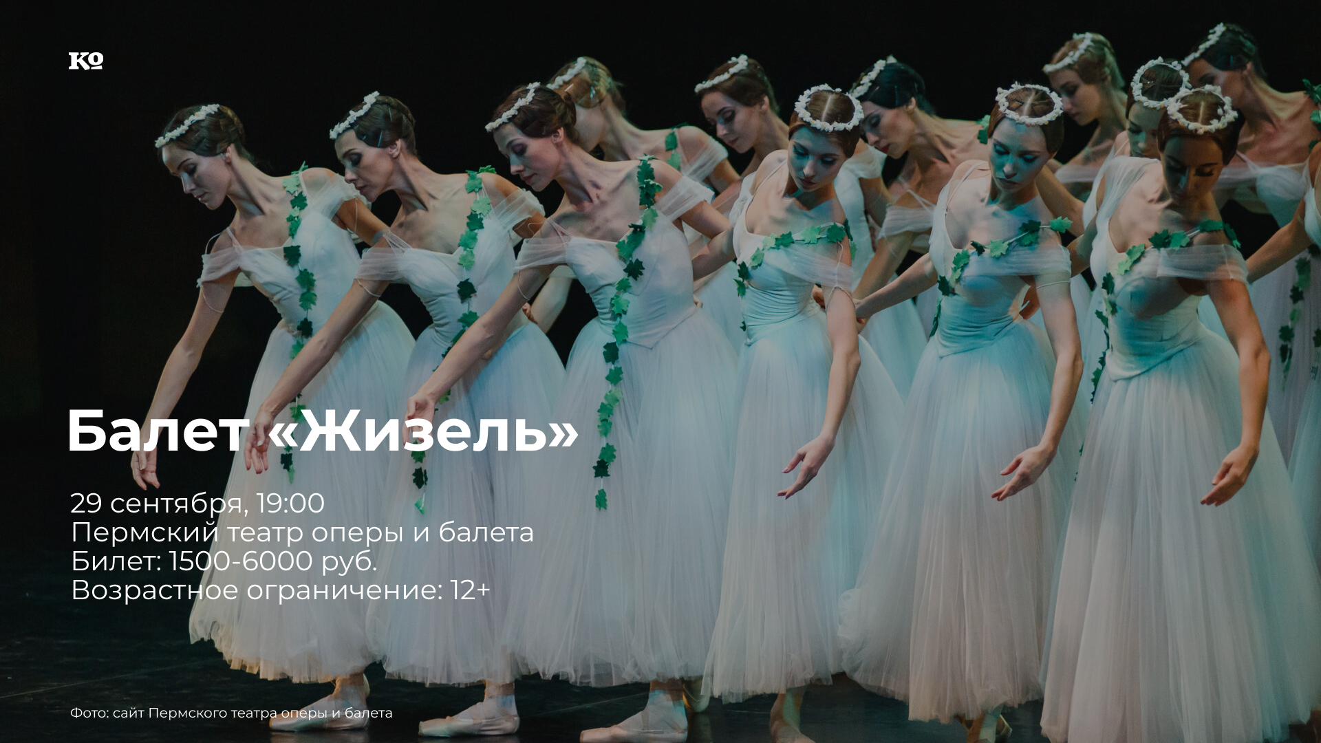 В основу либретто положена пересказанная Генрихом Гейне легенда о призраках умерших невест — виллисах. Они парят ночью над кладбищем, готовые до смерти закружить любого встречного мужчину. Такая участь ждала и графа Альберта, из-за которого погибла обманутая им крестьянка Жизель. Но даже после смерти Жизель готова пожертвовать собой ради любимого. В 1926 году «Жизель» в канонической хореографии Мариуса Петипа (1884, Мариинский театр) открыла первую страницу в истории Пермского балета. В 2008 году реставрацию постановки осуществила экс-солистка Мариинского театра Татьяна Легат.