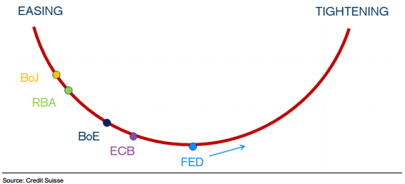 Тактическая причина для оптимизма в том, что США и ФРС, похоже, проходят нижнюю точку монетарного цикла, тогда как другие Центробанки крупных стран (Японии, Австралии, Банк Англии, ЕЦБ) еще собираются смягчать ставки и проводить свой вариант «количественного смягчения»
