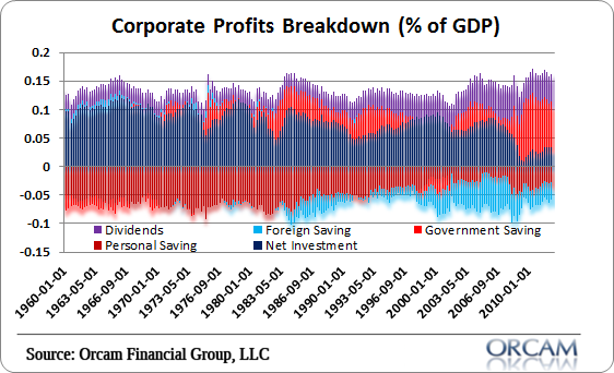 Profits = Investment — Household Saving — Government Savings — Foreign Savings + Dividends.