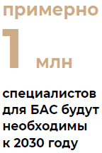 Для отрасли нужны в первую очередь: внешние пилоты (или эксплуатанты, операторы) — те, кто непосредственно управляет беспилотником; разработчики — те, кто создаёт беспилотники; разработчики программного обеспечения — те, кто создаёт начинку для БАС.