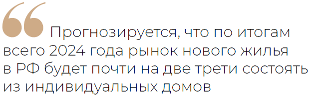 «Предложение также будет расти, этому способствуют как рыночная ситуация, так и вводимые меры государственной поддержки. Растёт количество организованных коттеджных посёлков, людям теперь предпочтительнее выбирать локацию, где есть все инженерные коммуникации и управляющая компания. Прогнозируется, что по итогам всего 2024 года рынок нового жилья в РФ будет почти на две трети состоять из индивидуальных домов», — говорят в компании.