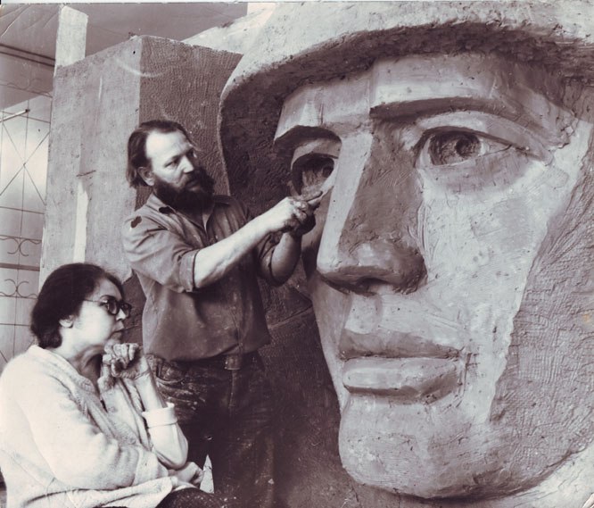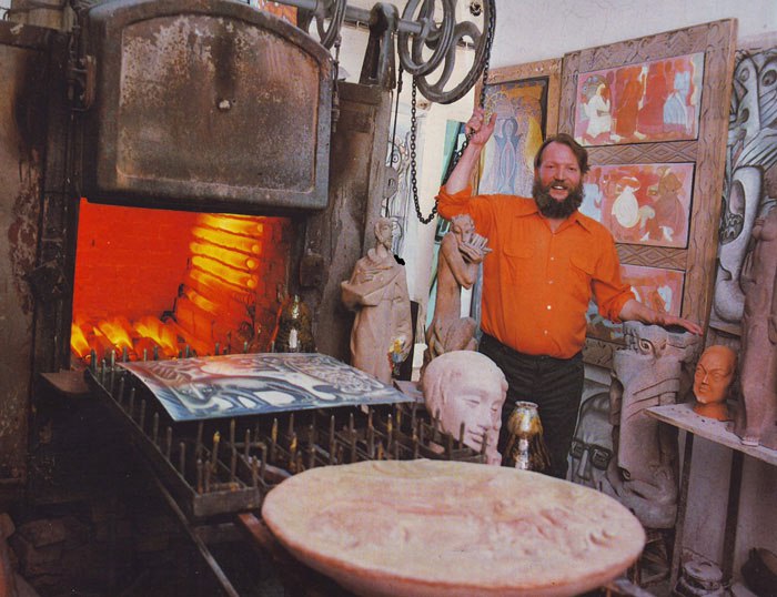 Обжиг плит для панно "Наука" в мастерской Калюпановых. Фото из семейного архива предоставлено Савелием Калюпановым