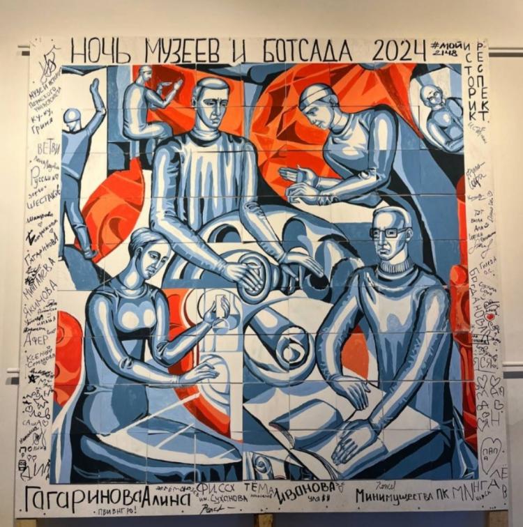 Интересно, что это не первая реконструкция панно Калюпановых, не первое обращение к их opus magnum со стороны современных художников. В мае нынешнего года во время «Ночи музеев и ботсада» Пермского университета (ПГНИУ), которая традиционно проходит накануне общегородской Ночи музеев, по инициативе директора Музея истории Пермского университета Марии Мингалёвой прошла акция «Пора вернуть «Науку» городу». Художница Алина Гагаринова создала репродукцию центральной части панно Калюпановых, разложила её на фрагменты — плитки размером 24х24 см — и разбила рисунок по номерам, по которым участники акции — собственно, все желающие, гости «Ночи…» — раскрашивали плитки. На раме и оборотной стороне панно, находящегося в Музее истории университета, значится: «Наука. Ночь музеев и Ботсада ПГНИУ. 2024. Фанера, пенокартон, акрил», — и фамилии участников акции.