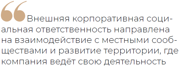 «Благотворительность, волонтёрство, наставничество, экологические инициативы, поддержка сфер образования и культуры сегодня в значительной степени направлены на кадровую работу, повышение заинтересованности сотрудников в том, что завтра на смену им на предприятие, которым можно гордиться, придут их дети и внуки», — говорит эксперт.