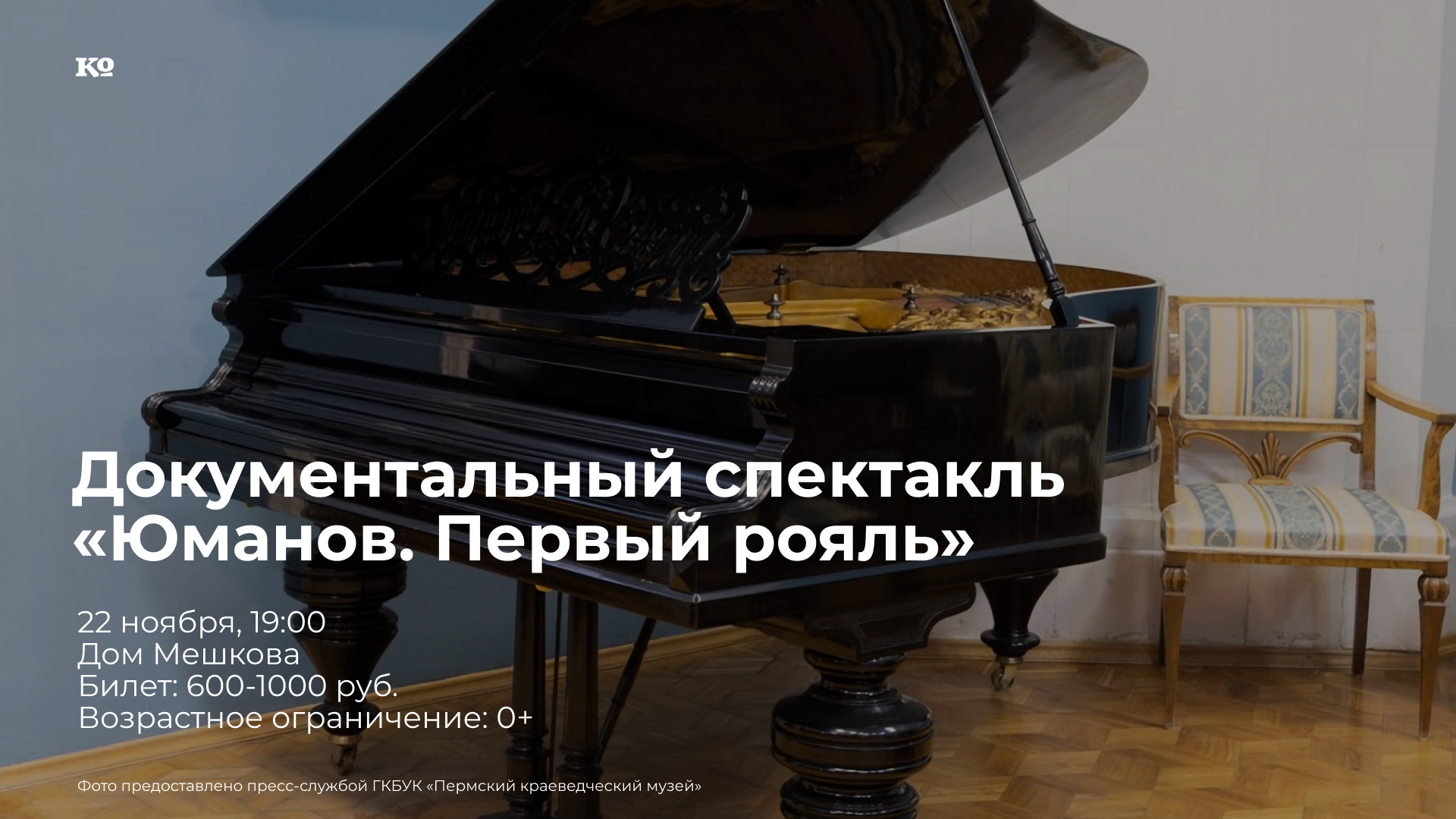 Спектакль создан Пермским иммерсивным театром и театром-лабораторией «Открытый код» в содружестве с Пермским краеведческим музеем. Постановка рассказывает историю основателя первой на Урале фабрики музыкальных инструментов Дмитрия Юманова в жанре краеведческого расследования с помощью современных приёмов сторителлинга. Как родилась мечта делать в Перми клавишные инструменты? Как крестьянин по происхождению смог построить такое производство? Почему о таком громком предпринимательском и музыкальном успехе сегодня мало кто помнит и знает? Поиски ответов на эти и другие вопросы легли в основу проекта. На протяжении всего спектакля будет звучать живая музыка: пианист Максим Сон исполнит знаковые композиции XIX века на одном из сохранившихся роялей фабрики Юманова, который находится в музыкальной гостиной Дома Мешкова.