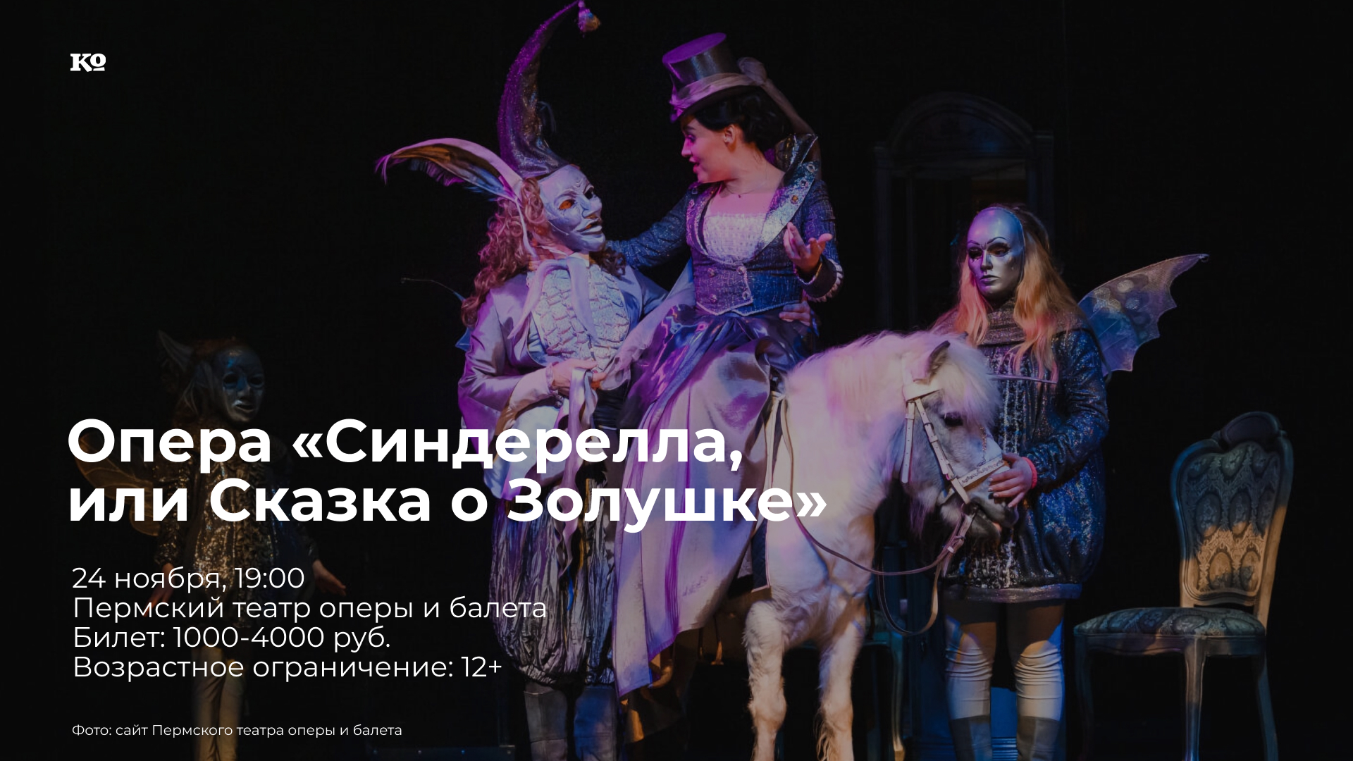 Раритетное произведение Жюля Массне впервые в России было поставлено именно в Пермском театре оперы и балета. На его сцене «Синдерелла» приобрела особую магию: дело не только в декорациях, создающих удивительный сказочный мир, но и в героях, которые предстают не просто персонажами, а настоящими живыми образами, полными эмоций. Искушённые меломаны имеют редкую возможность послушать элегантную и малоизвестную партитуру автора «Вертера», а вечный сюжет о превращении трудолюбивой и бедной сироты в прекрасную принцессу не оставит равнодушными поклонников романтических историй. В спектакле много сюрпризов и необычных персонажей. Например, Фея въезжает на сцену на пони, загримированном под волшебного Единорога.
