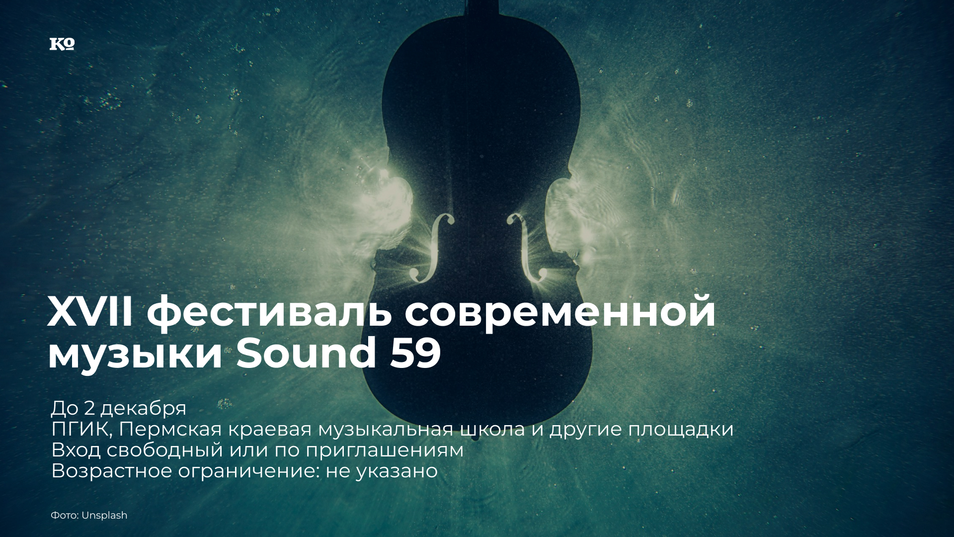 В начале ноября в Перми и Пермском крае стартовал уникальный международный фестиваль современной музыки Sound59, который объединил лучших композиторов, музыкантов и хореографов России и стран СНГ. Для гостей фестиваля доступен широкий выбор разнообразных концертов, творческих встреч с выдающимися деятелями культуры, а также мастер-классов и лекций, где каждый сможет узнать что-то новое для себя. В этот вторник, 19 ноября, в рамках фестиваля в Пермском государственном институте культуры в 12:30 пройдёт творческая встреча с заведующей координационно-аналитическим отделом Московской государственной консерватории им. П.И. Чайковского, музыковедом и журналистом Татьяной Любомирской. Вход на встречу свободный. Афишу следующих событий можно посмотреть на сайте Sound59.