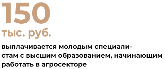 Введены подъёмные — молодым специалистам с высшим образованием, начинающим работать в агросекторе, выплачивается 150 тыс. руб., со средним профессиональным образованием — 100 тыс. руб.