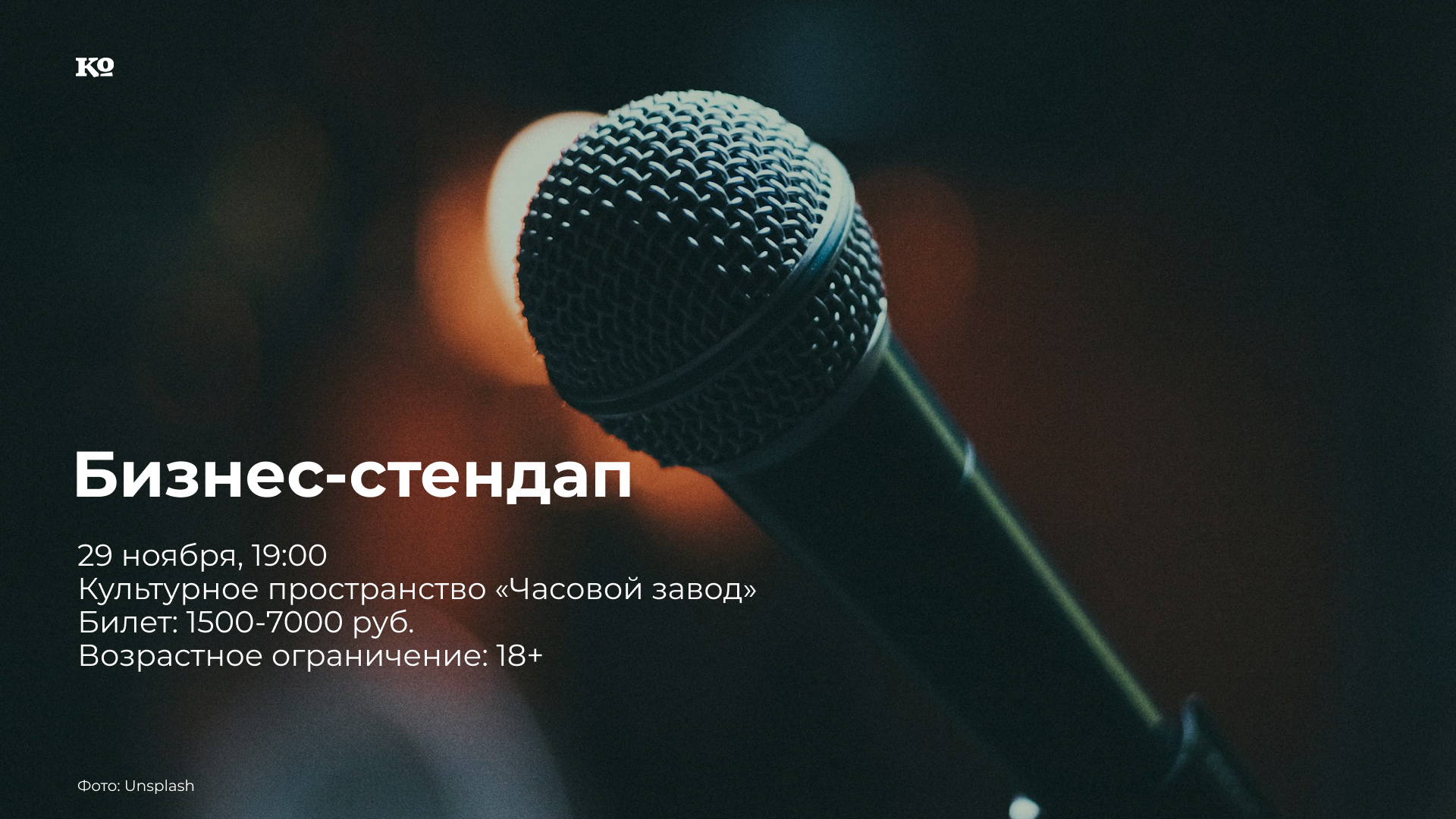 На площадке «Часового завода» состоится уникальное событие — бизнес-стендап с участием артиста Comedy Club Жени Синякова. Выступать будет не только приглашённая звезда и другие комики, но и сами предприниматели — для них это будет первый опыт в стендапе, а ещё возможность привлечь внимание к своему бизнесу в нестандартным формате, завести новые знакомства и найти единомышленников и партнёров. Также в программе: специальные гости, розыгрыш призов от спонсоров и множество активностей для зрителей.
