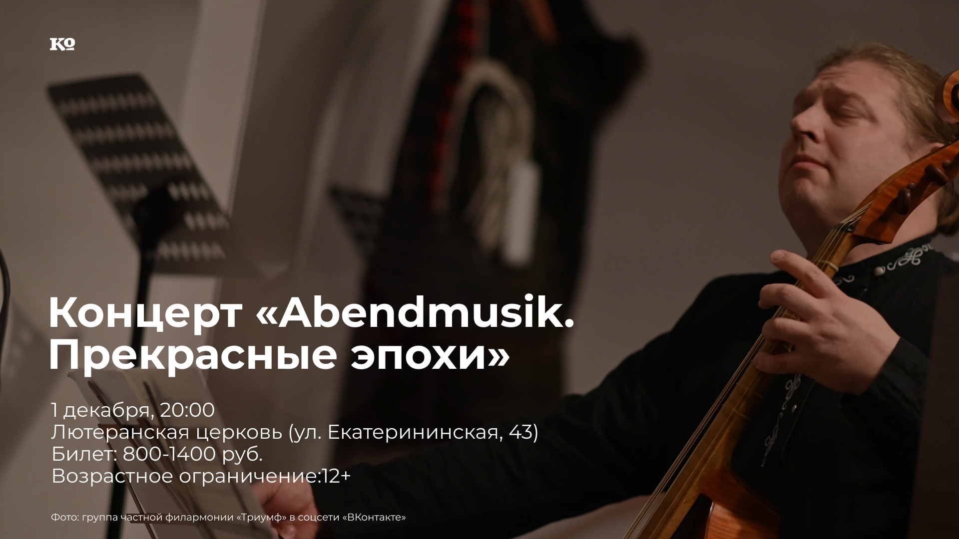 Частная филармония «Триумф» продолжает проект Abendmusik (нем. — «вечерняя музыка»). Это цикл концертов духовной и светской музыки в особой атмосфере старинной церкви, уникальная акустика которой позволяет получить незабываемый опыт восприятия произведений. Гости ближайшего концерта Abendmusik за один вечер смогут услышать эхо восьми столетий европейской музыки. Евгений Синицын (виола да гамба) и Алексей Сучков (орган) проведут их от мелодий Средневековья — через ренессансные, барочные, классицистские и романтические произведения — к работам композиторов XX века.