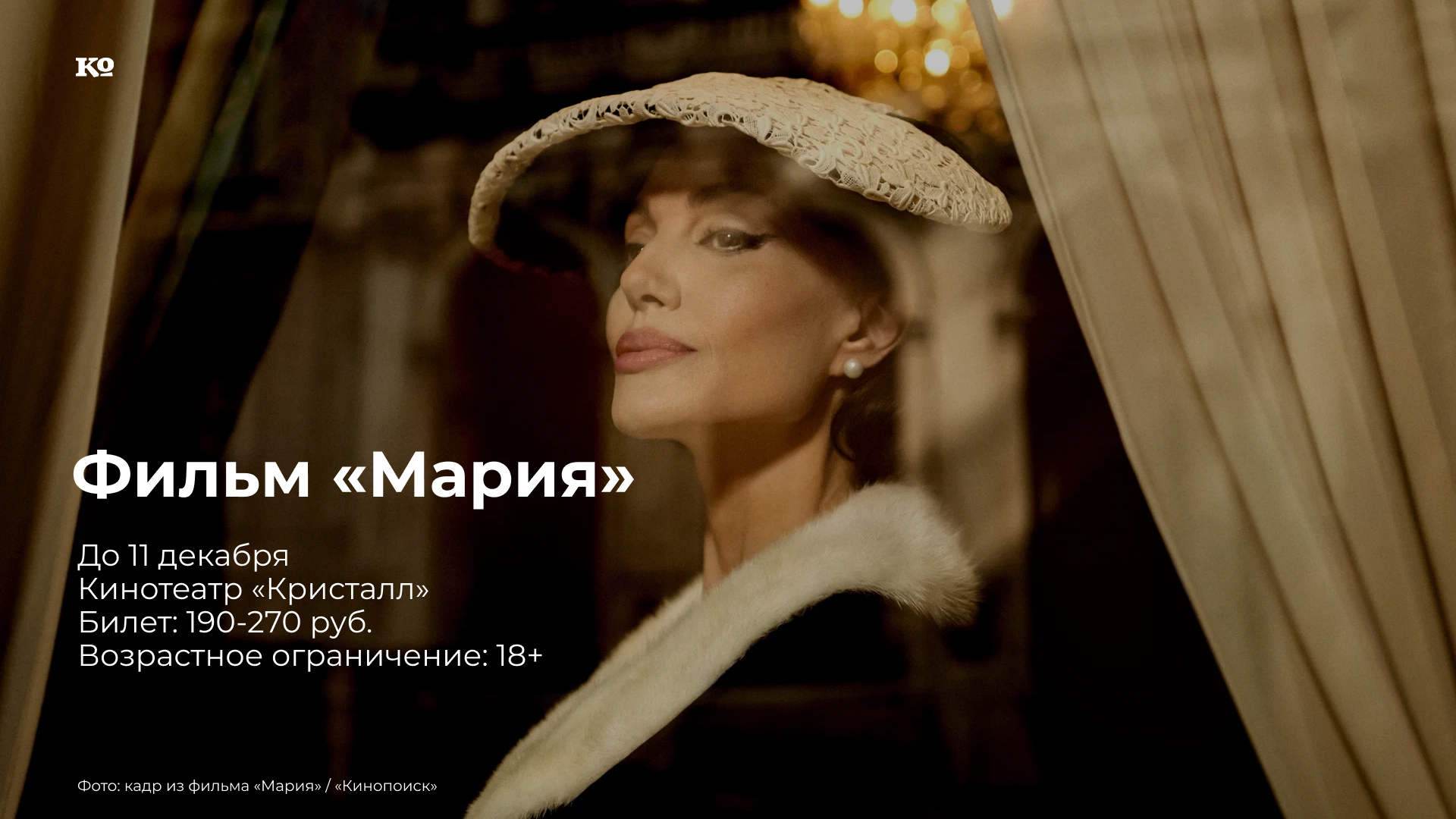 Новая работа чилийского режиссёра Пабло Ларраина рассказывает историю последних дней оперной певицы Марии Каллас. Это завершающая часть его трилогии о знаковых женщинах XX века — после фильмов «Джеки» (о Джеки Кеннеди) и «Спенсер» (о принцессе Диане). Действие фильма происходит в Париже 1977 года, где Каллас проводит свои последние дни. Анджелина Джоли, сыгравшая главную роль, создаёт тонкий, нюансированный портрет великой певицы на закате жизни. Режиссёр смешивает реальность и галлюцинации героини, используя флешбэки для исследования её прошлого и внутреннего мира.