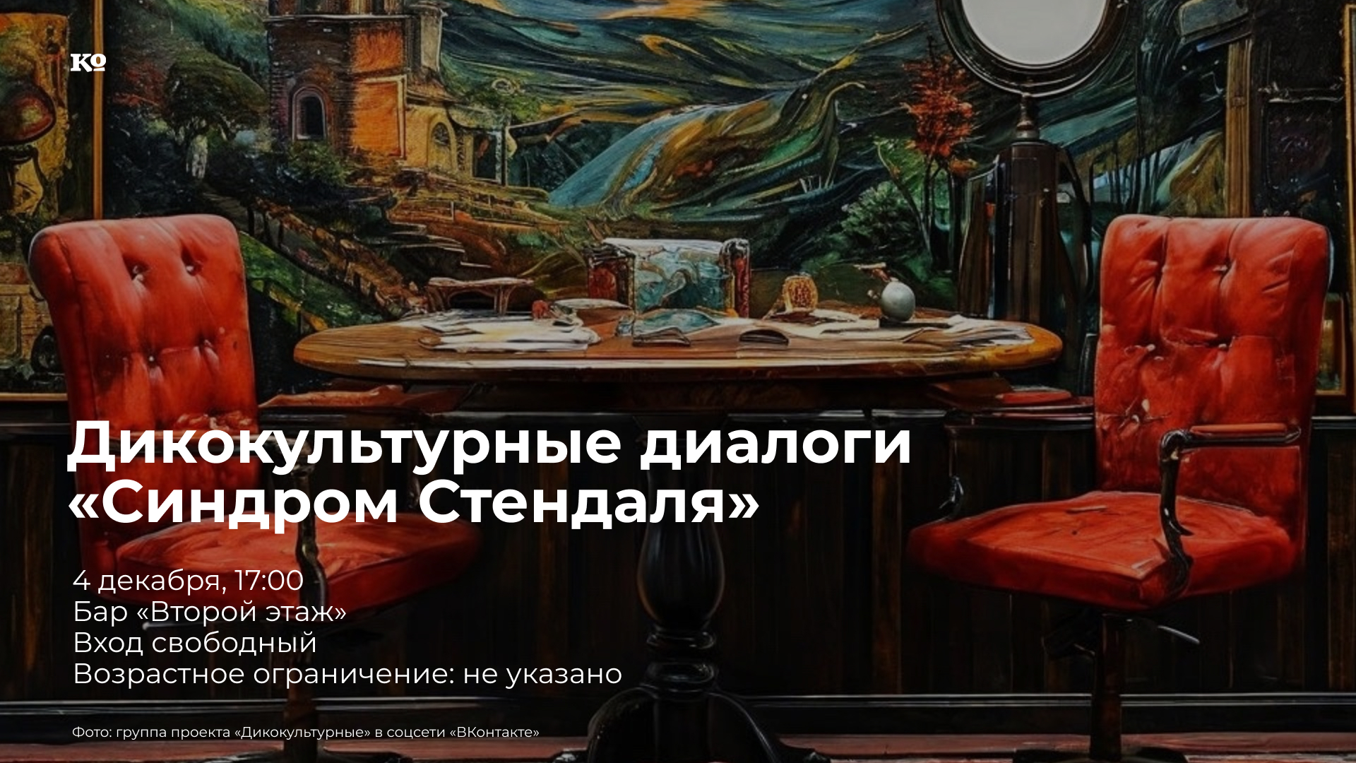 «Дикокультурные» — новый пермский проект про современное искусство и не только. В рамках проекта проходят арт-медитации, выставки, обсуждения, игры и другие события. На дикокультурные диалоги «Синдром Стендаля» приглашают всех, кто недавно испытал эстетическое переживание от прослушанного, просмотренного или прочитанного и хотел бы этим поделиться. Формат встречи очень простой: соберутся в баре «Второй этаж», сядут за столики, познакомятся, выберут тему и будут разговаривать. И всё ради того, чтобы понять, зачем нам искусство. Тех, кто хочет посетить встречу, организаторы просят дать им знать любым способом. Например, можно написать в телеграм-канале проекта или в его группе ВКонтакте.