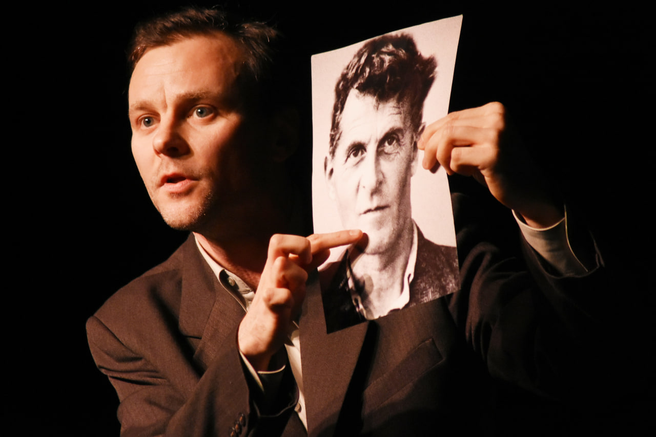 Впрочем, как было сказано, это лишь небольшой эпизод спектакля, который является свободным изложением идей Людвига Витгенштейна и его русского переводчика, а также беглым рассказом о жизни австрийского философа. Главное чудо «Леса» — это игра артиста Бориса Алексеева, который умудряется своей сценической убедительностью, азартом, блеском импровизации оживить отвлечённые темы и сделать спектакль не просто нескучным, а по-настоящему увлекательным. В один из импровизационных моментов он обращается к отсутствующему товарищу — режиссёру Александру Плотникову, который раньше бывал на всех представлениях, но на «МоноФест» прибыть не смог.