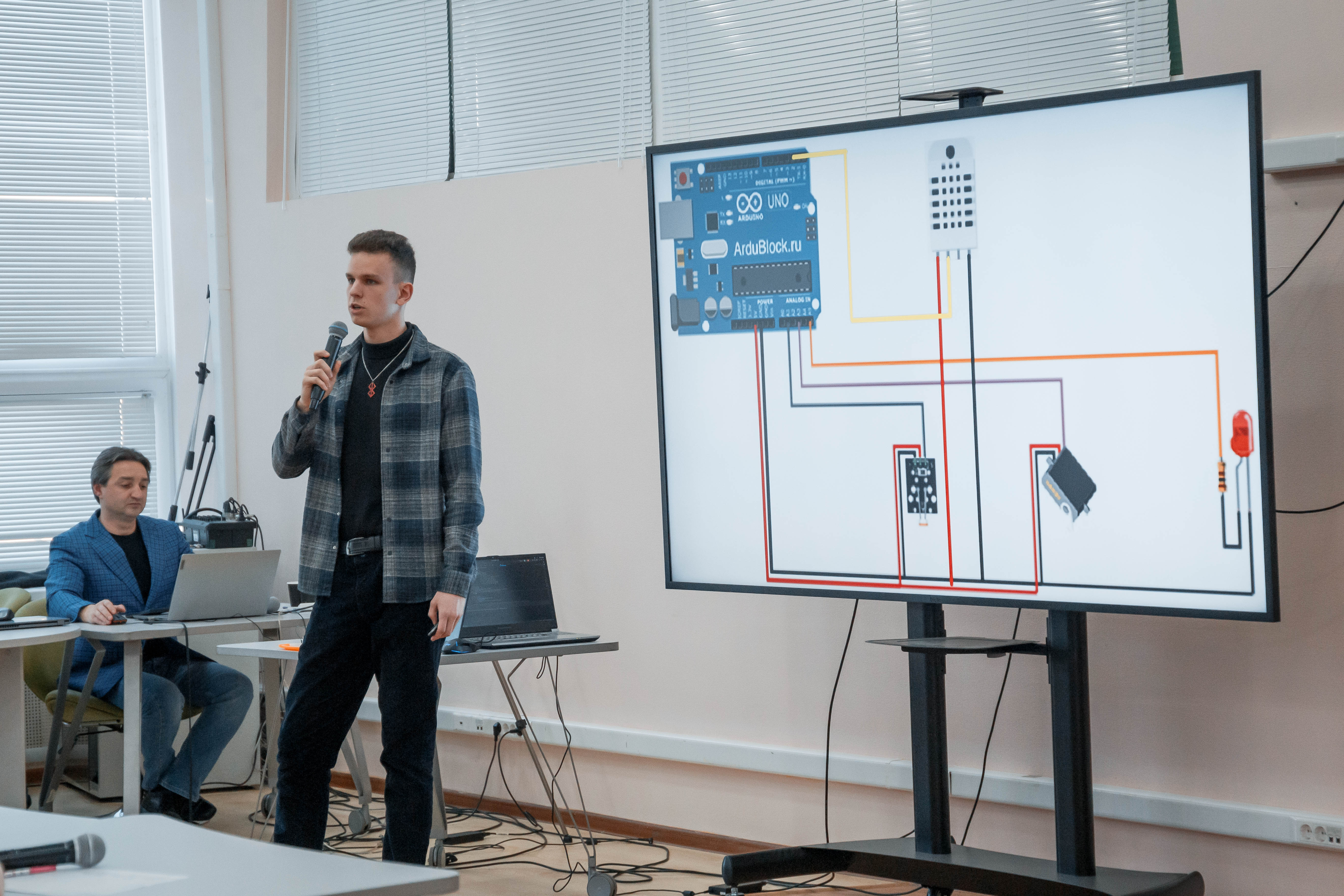 Студент второго курса электротехнического факультета Пермского политеха Андрей Сырвачев рассказал о проекте его команды «АСУ микроклимата кампуса «Будущее Пармы». Система управляет микроклиматом с помощью искусственного интеллекта и способна сократить расходы на обслуживание и администрирование системы. По замыслу разработчиков, нейросеть на основе данных с камер видеонаблюдения определит количество людей в аудиториях, проанализирует показания датчиков систем отопления, вентилирования и освещения в помещениях кампуса и с помощью специального кода подаст сигнал для изменения параметров работы.
