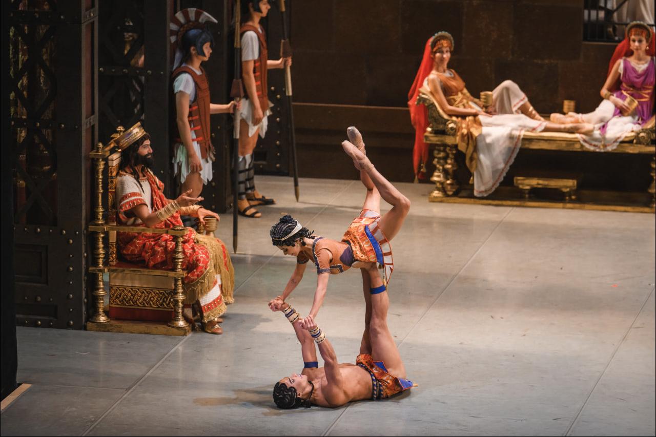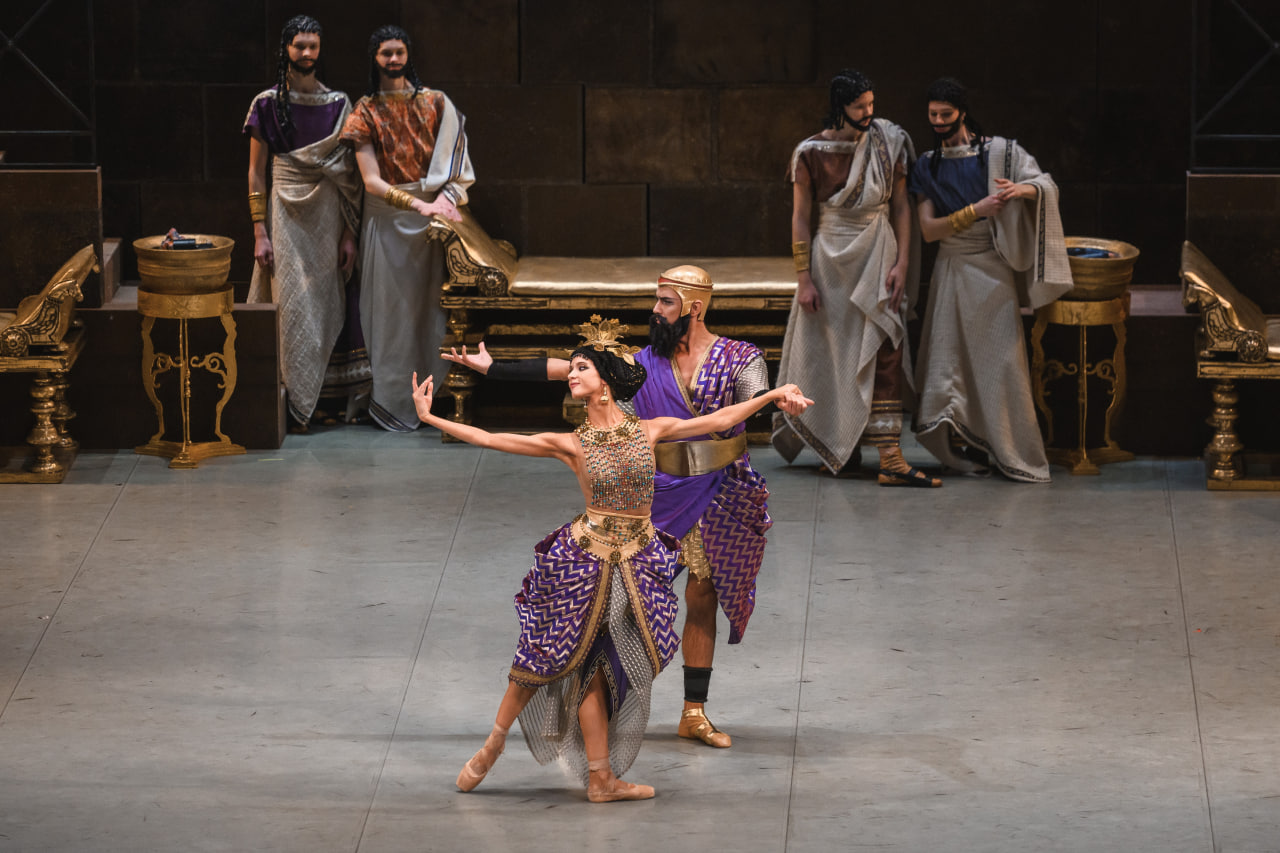 В других составах титульная роль досталась новым солисткам Диане Куцбах и Анн-Жуллиет Пинейро; они же очень украшают первый состав в ролях второго плана: Диана пленительна в роли финикийской царицы Зивар, а Анн-Жуллиет заразительно экзотична в роли рабыни. Обе героини выступают в характерных дуэтах: Зивар — с царём Финикии Эшбаалом в исполнении Ивана Ткаченко, а рабыня, соответственно, с рабом, которого танцует соотечественник Анн-Жуллиет — бразилец Натан Фернандес. Пара из тех, о которых в соцсетях пишут «агонь»: могучий атлет и крошечная, вёрткая девчонка; невозможно не выделить их во всём густонаселённом спектакле.