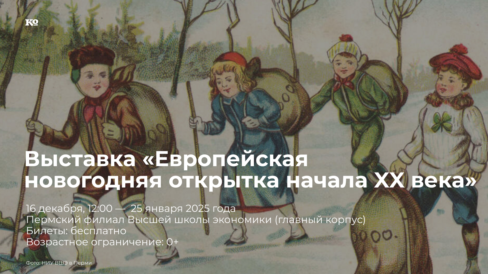 В понедельник, 16 декабря, в 12 часов в главном корпусе Пермского филиала Высшей школы экономики откроется выставка европейских новогодних открыток, выпущенных в начале XX века (0+), из частной коллекции известного пермского филателиста Сергея Филатова. Среди экспонатов — изысканные открытки, украшенные зимними пейзажами, снежинками, ёлками и другими символами новогодних праздников. Пёстрые краски, изобретательные рисунки и тщательно подобранные шрифты делают каждую открытку яркой и запоминающейся. Уникальными экспонатами являются открытки периода Первой мировой войны из коллекции дочери писателя Ф.М. Достоевского — Любови Фёдоровны Достоевской.