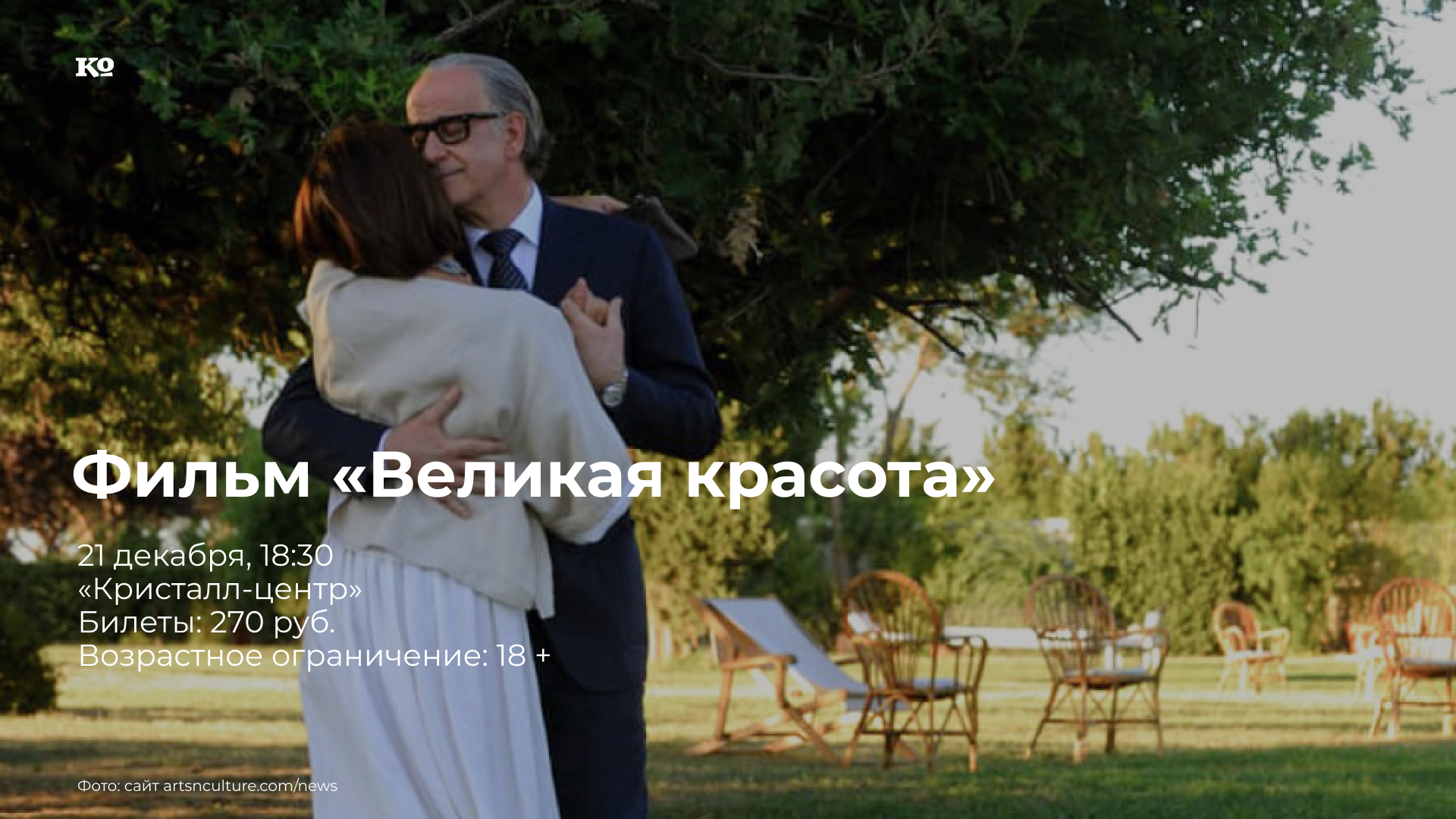 Рим в разгар лета. Толпы туристов, одержимых мечтой — прожить здесь свои «римские каникулы». А где-то рядом крутится другая карусель — карусель сладкой жизни, о которой Джеп Гамбарделла, красавец и обольститель, известный журналист и писатель, знает, кажется, всё. На террасе квартиры Джепа с видом на Колизей проходят лучшие вечеринки в городе и собирается блестящее общество, чтобы поучаствовать в блестящей комедии бессмысленного. Но для Джепа, написавшего в молодости один-единственный роман и заслужившего репутацию гения-одной-книги, этот жанр, похоже, себя исчерпал. Он мечтает снова начать писать. И отправляется на поиск новых сюжетов. Единственный показ шедевра Паоло Сорентино на языке оригинала с русскими субтитрами.