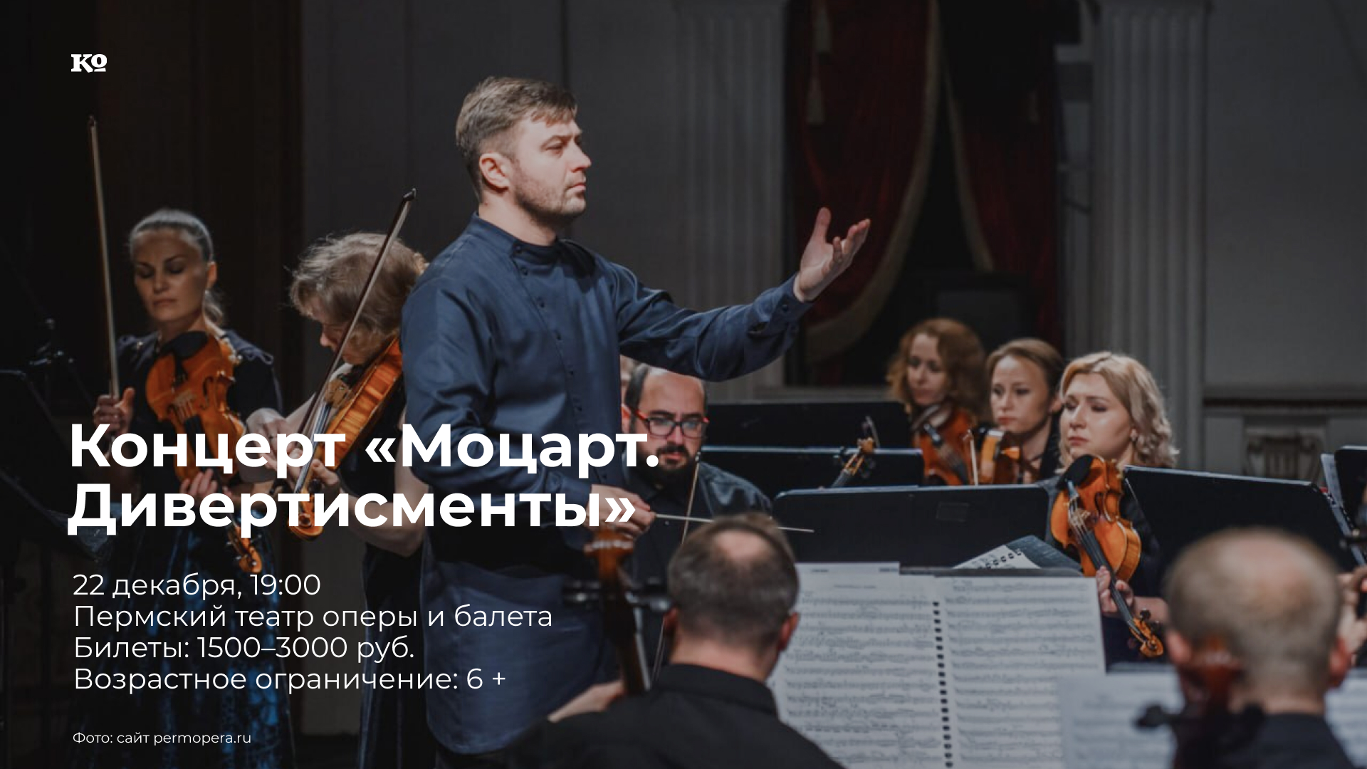 Необычный концерт из произведений Вольфганга Амадея Моцарта под управлением двух дирижёров. В первом отделении под управлением Петра Белякина группа духовых инструментов оркестра театра исполнит Дивертисменты для духовых № 8, 9 и 12, а во втором отделении Владимир Ткаченко продирижирует Дивертисментом для струнных ре мажор и Серенадой № 13 для струнных соль мажор («Маленькая ночная серенада»).