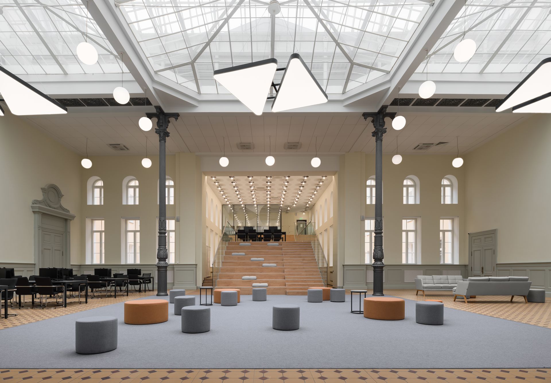 Ещё в XIX веке он был спроектирован с целью повышения инсоляции центрального аппаратного зала и снижения затрат на освещение. Сегодня мы не только сохранили и бережно восстановили этот редкий архитектурный элемент, но и добавили света в остальные помещения, используя специальные цветовые решения в интерьере и грамотное размещение осветительного оборудования.