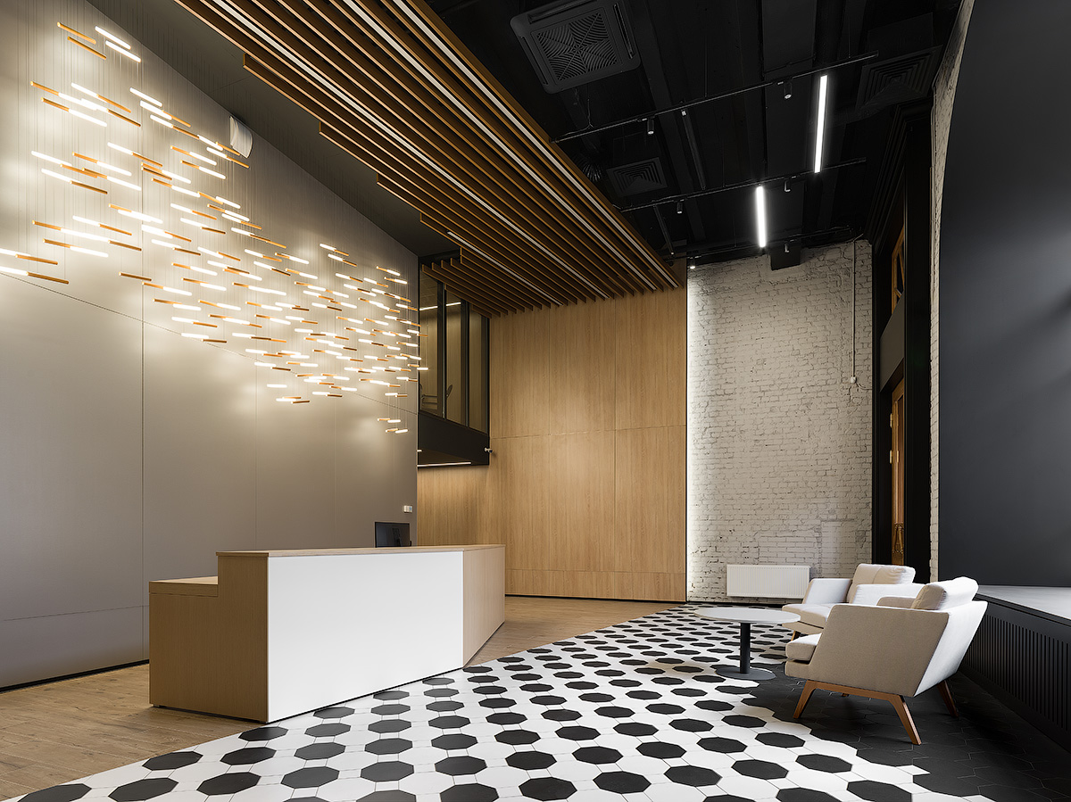 Дизайн интерьера расширяет временные рамки: сотрудники могут представить себя как в современном офисе, так и в историческом прошлом этого места
