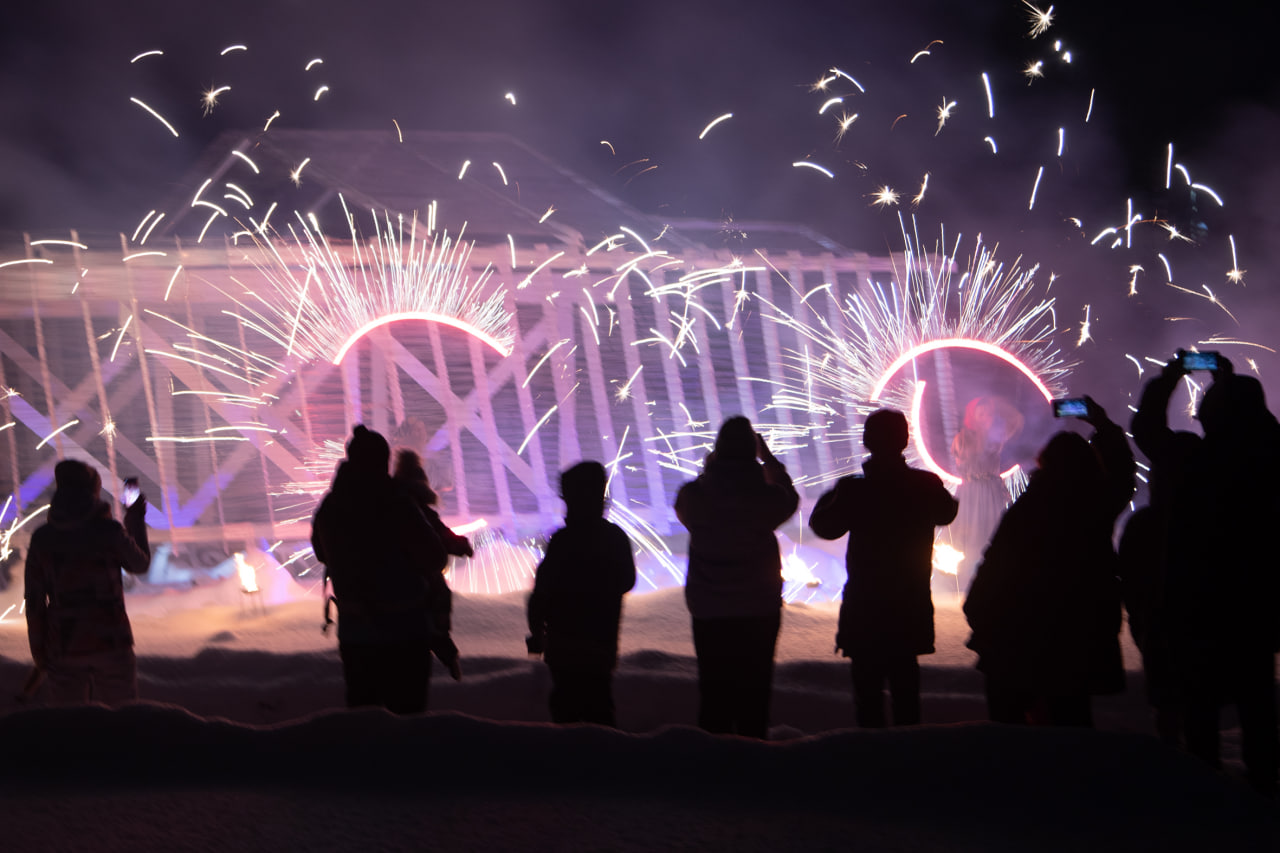 Есть народная примета: когда в Усолье проходит фестиваль «Горный город» (0+), непременно ударяет мороз. Вот и в этот раз слякотная оттепель резко сменилась крепким морозцем, который днём сопровождался крупным, пушистым снегом, а вечером — ясным небом с полной луной. Строгановское Усолье превратилось в настоящую сказку, игру света, снега и старинной архитектуры.
