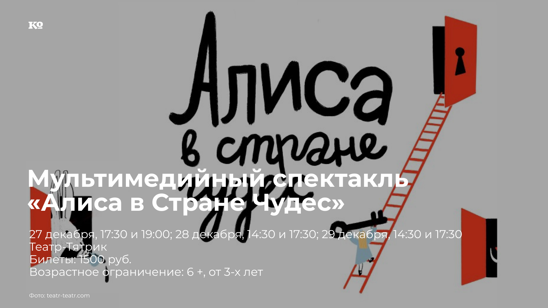 Музыкальная версия известной сказки, рассказанная как фантазийная опера. Специально для спектакля были написаны авторский текст и музыка, сохранившие дух оригинального произведения. Вместо привычного зрительного зала зрители «Алисы в стране чудес» попадут в запутанный лабиринт с необычными комнатами и переходами. Пространство спектакля насыщено эффектными проекциями и инсталляциями, с которыми можно взаимодействовать. На протяжении всего спектакля взаимодействовать со зрителями будут три артиста, которые меняют свои образы на каждой локации. Зрители встретятся с Гусеницей, «соберут» виртуального Чеширского Кота, выпьют чай с Белым Кроликом и Шляпником, а также сыграют с Королевой в крокет. Для посещения спектакля необходимо принести сменную обувь.