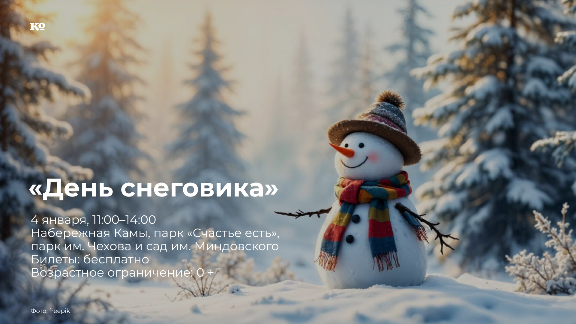 Семьи, команды коллег и друзей, а также все пермяки — взрослые и дети — приглашаются на массовую лепку снеговиков. Для участников подготовят удобные площадки и инструменты. Лучшие снеговики принесут своим авторам призы: конкурс пройдёт по нескольким номинациям.