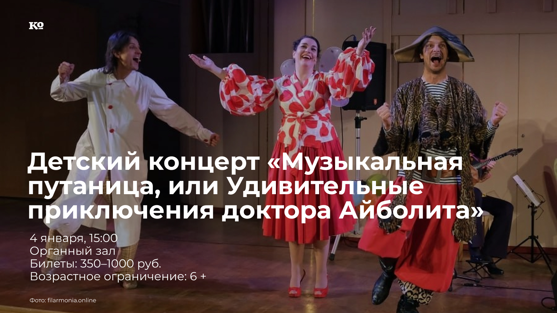Музыкальная сказка, сочинённая и поставленная на сцене актрисой Пермского ТЮЗа Ксенией Жарковой и исполненная квартетом «Каравай», солист Пермской оперы Эдуардом Морозовым (баритон), солисткой Пермской филармонии Маргаритой Соснер (сопрано), и популярным пермским актёром и певцом Евгением Замахаевым. На сцене Органного зала с помощью музыки и стихов оживут знаменитые персонажи Чуковского: Мойдодыр, Айболит, Бармалей, Федора, Муха Цокотуха. Прозвучат песни на стихи Чуковского и инструментальные композиции по мотивам его произведений: «Телефон», «Айболит», «Мойдодыр», «Муха-Цокотуха», «Федорино горе», «Тараканище», «Бармалей» и другие.