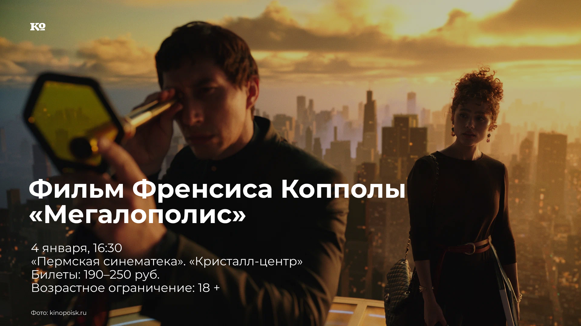 Зрители Пермской синематеки на неделю раньше других увидят opus magnum классика мирового кино Фрэнсиса Форда Копполы – фантастический эпос «Мегаполис». В российский прокат лента выходит 9 января 2025 года. Коппола создал свыше 300 версий сценария этого фильма, продал ради съёмок весьма успешную винодельню и вложил в производство 120 млн долларов собственных средств.В американском городе Новый Рим архитектор Цезарь Катилина (Адам Драйвер), умеющий останавливать время лауреат Нобелевской премии и глава дизайнерского бюро, проектирует идеальный мегаполис будущего, где все будут счастливы. Построить его он планирует с помощью им самим же изобретённого волшебного материала – мегалона. Против такого подхода и самого Цезаря активно выступает мэр Цицерон (Джанкарло Эспозито).