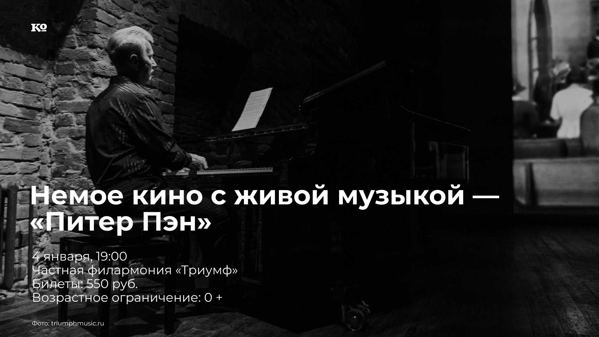 Американский семейный фильм 1924 года. Питер Пэн, мальчик-который-никогда-не-стареет, переносит в Нетландию Венди, Джона и Майкла Дарлингов. Там их ждут новые друзья — Пропавшие мальчишки и фея Динь-Динь, удивительные и опасные приключения, битва с Капитаном Крюком и его пиратами. Однако вскоре Дарлинги начинают скучать по дому и родителям, и Венди предлагает всем Пропащим мальчикам во главе с Питером лететь с ними обратно, обещая, что всех их усыновят. Мальчики соглашаются, но Питер отказывается, заявляя, что он не собирается взрослеть. Он берёт обещание с Венди, что та снова полетит с ним в Нетландию весной, помочь с уборкой. Просмотр будет сопровождаться живой музыкой в исполнении тапёра Александра Колесникова, одного из лучших пианистов Перми, мастера джазовой импровизации.