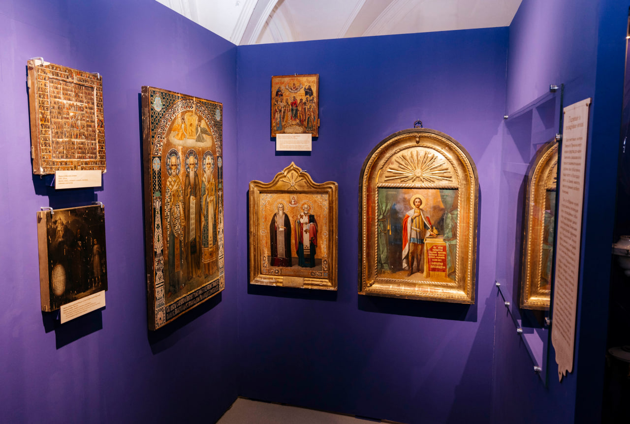 Музей истории веры продолжает обновляться. Совсем недавно, в декабре 2024-го, на втором этаже открылась экспозиция редкой иконы (0+). Здесь собраны действительно уникальные экспонаты: редкие сюжеты, редкие персонажи, редкие живописные техники. Отдельный уголок посвящён домашней иконе со святыми покровителями, здесь есть, например, икона, на которой изображены и подписаны все святые на все дни года! Икона небольшого формата, так что эта работа по уровню рукодельности может сравниться с вырезанием образа Шивы на рисовом зёрнышке.