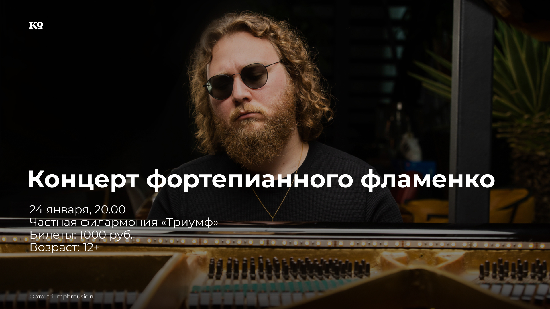 В частной филармонии «Триумф» начинается традиционный «Фламенко-уикенд». Его первым событием станет концерт в формате piano-gala: в полной темноте, лишь единственный луч — на руки пианиста. По традиции зрители могут располагаться на пуфиках и подушках почти у самого рояля, а также на обычных зрительских местах. В мире всего шесть музыкантов, исполняющих фламенко на рояле. Один из них — Алексей Стародубцев (Москва) — единственный композитор фламенко в России. На концерте прозвучат народные мотивы фламенко в авторской интерпретации Алексея: фанданго, ронденьи, фальсеты и силенсио.