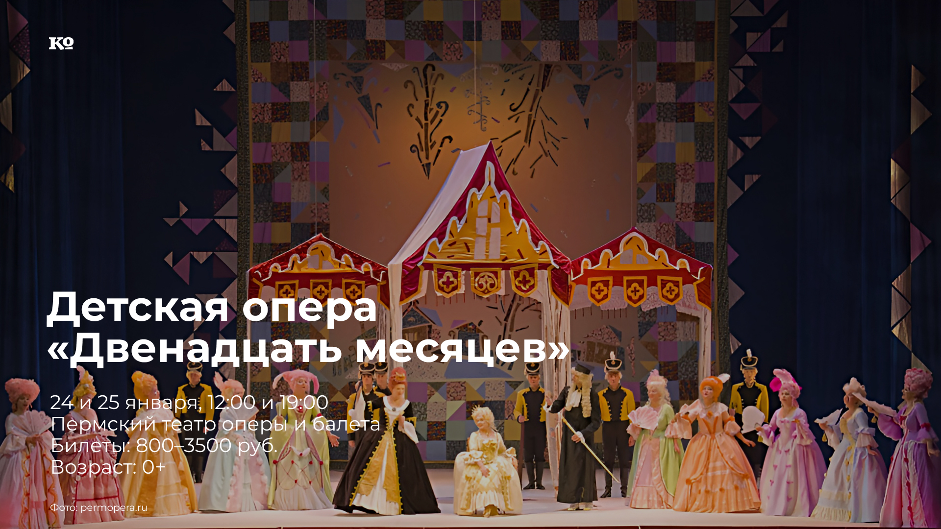 Опера Сергея Баневича была написана в 2006 году и поставлена в Перми в 2008-м. Нынешнее возобновление после большого перерыва — дань памяти режиссёру Ольге Эннс, трагически погибшей в 2013 году. Капитальным возобновлением спектакля занимаются режиссер Татьяна Полуэктова и дирижёр Мария Зоркина. Под Новый год капризная Королева обещает корзину золота тому, кто принесет ей во дворец букет подснежников. Жадные до денег Мачеха и Дочка посылают Падчерицу в зимний лес, где девушка встречает двенадцать братьев-месяцев. На один час Январь уступает природу во владение брату Апрелю — сугробы расступаются, и на поляне расцветают весенние цветы.