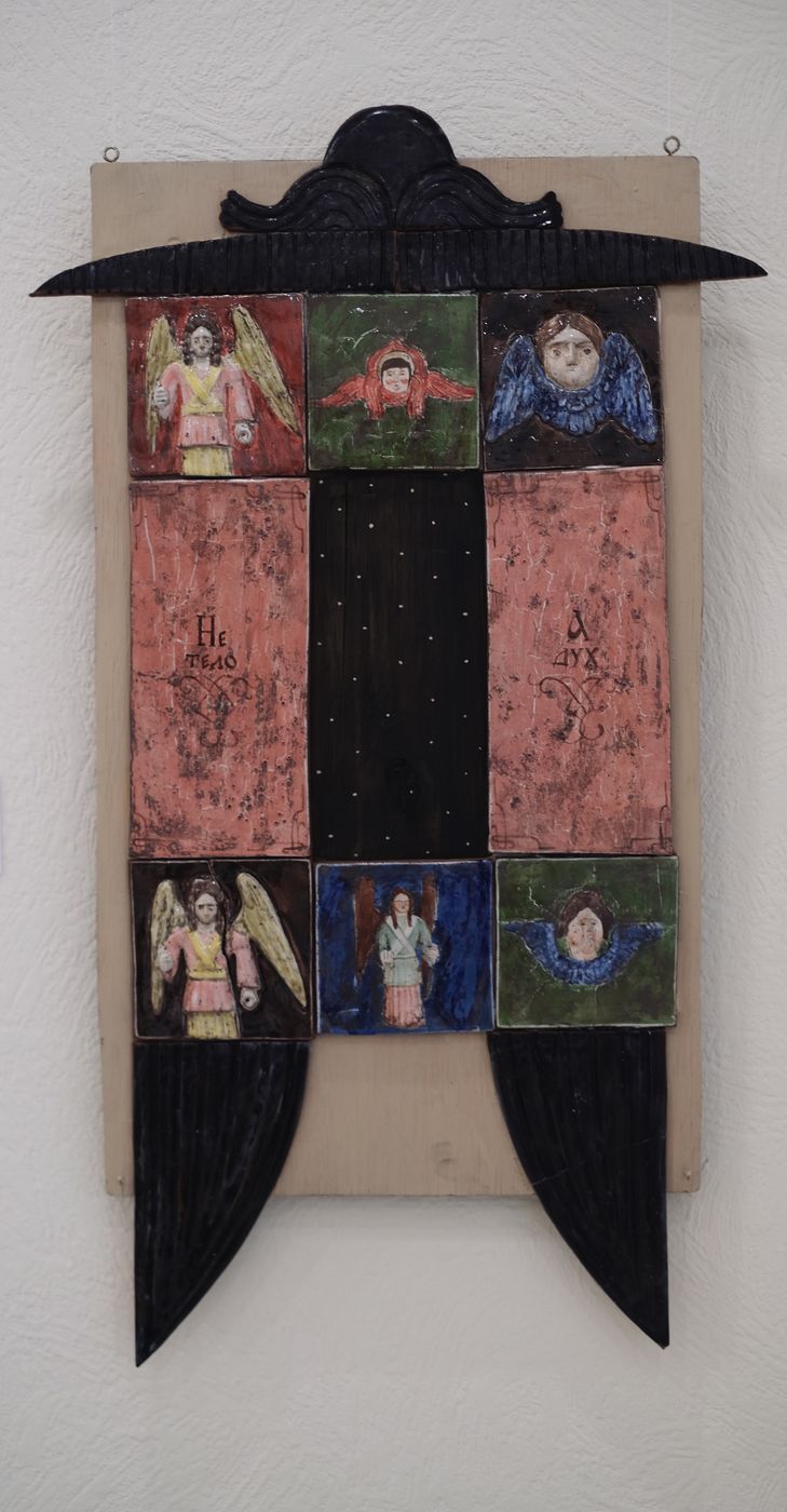 Очень важно, что «С четверга на пятницу» — не сольная выставка, а дуэтная: живопись Татьяны Нечеухиной сочетается с керамикой и ассамбляжами Евы Нурулиной — и это тоже сюжет о преемственности поколений.