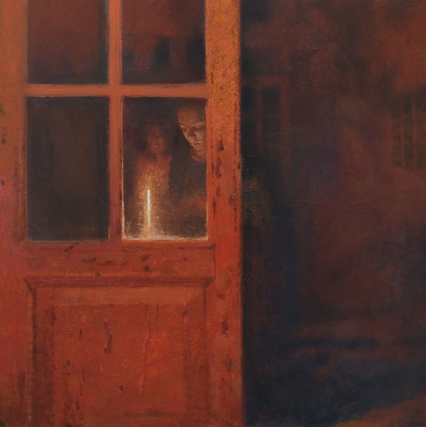 В этом плане показательна работа «Что ответил?»: в уютной полутьме — бабушка и внучка. Девушка смотрит на экран смартфона, который освещает юное лицо; бабушка вяжет, сложив усталые ноги на табурет и склонившись на плечо внучки; и так им хорошо и уютно вместе, и так волнуют старшую женщину личные переживания младшей! Очень много тепла в этом сюжете.