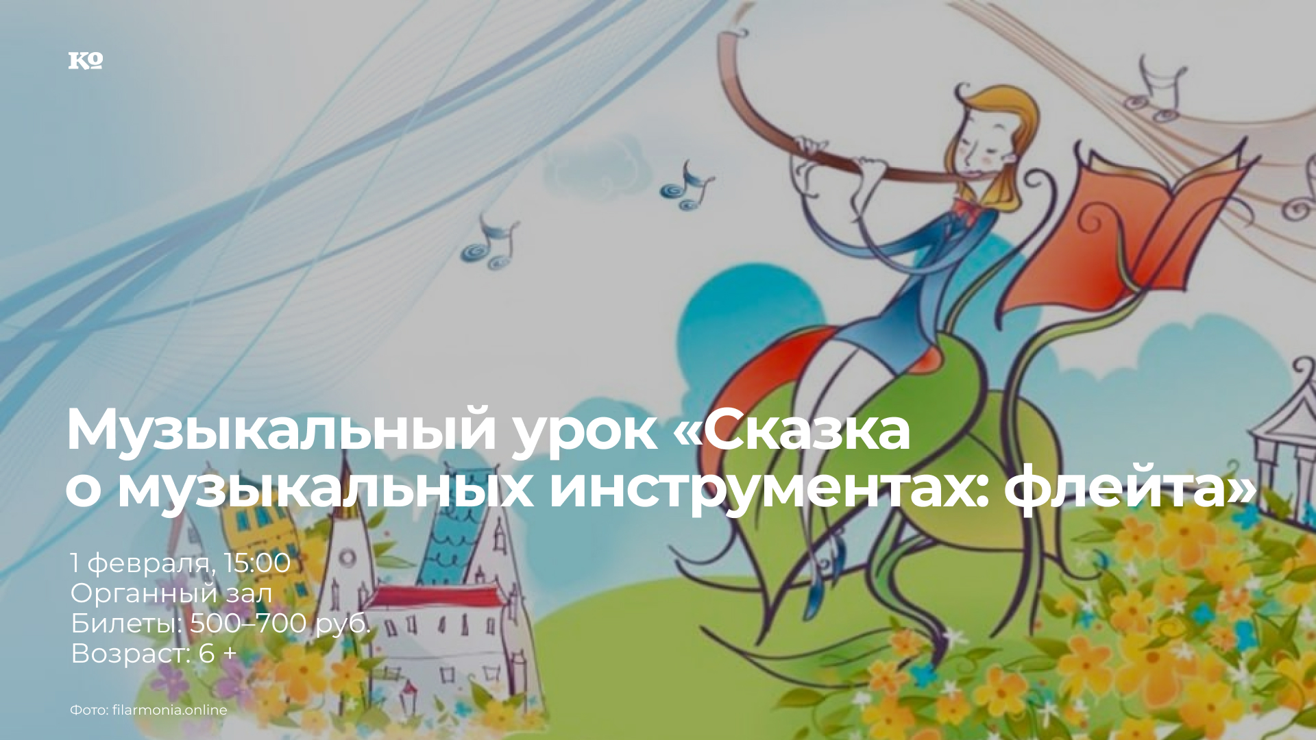 Сказочные герои Лира Унисоновна и Месье Бемоль представят детям флейту и расскажут интересные факты из жизни этого инструмента. Часть сказочного урока будет посвящена легенде о самой первой флейте на свете: это история о смекалке и находчивости древнего человека, ставшего изобретателем и первым исполнителем на этом инструменте. В теоретической части урока малыши узнают тонкости устройства флейты, познакомятся с её механикой. Программу подготовили артистка кино и театров Екатеринбурга Галина Суворова (Лира Унисоновна); артист Уральского государственного театра эстрады Вадим Долганов (маэстро Бемоль); солистка Свердловской государственной филармонии Наталья Камусина (флейта) и заслуженный работник культуры России, режиссёр Валерий Долганов.