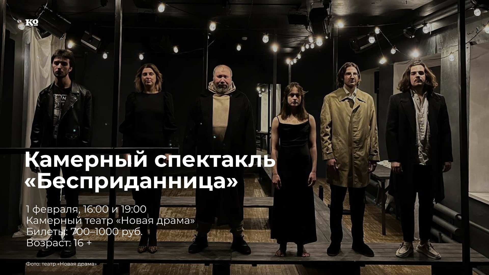 Александр Николаевич Островский. 1879 год. Купцы, сватовство, приданое… Казалось бы, как это далеко от нас… Однако в «Новой драме» постановки русской театральной классики всегда звучат актуально. Спокойствие небольшого городка на Волге нарушается выстрелом. В тишине провинции разворачивается драма двух «лишних» людей. Людей, не вписывающихся в жизнь, идущую своим чередом. Конфликт вечных парадигм — денег и любви. Что выберет человек: остаться человеком или сдаться в плен сиюминутных иллюзий? Художественный руководитель постановки, режиссёр — Марина Оленёва, Художник-постановщик — Любовь Мелехина, в ролях: Харита Игнатьевна Огудалова — Елизавета Тарасова, Лариса — Анастасия Миранович, Кнуров — Дмитрий Тронин, Вожеватов — Михаил Токаренко, Карандышев — Иван Гутин, Паратов — Фадей Володин.
