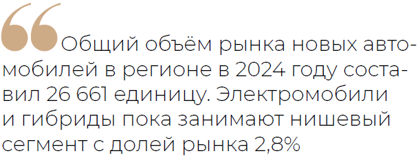 «Тем не менее мы не ожидаем, что электромобили и гибриды займут значительную долю рынка в регионе. Основной барьер — высокая стоимость, сравнимая с премиальным сегментом. Кроме того, эксплуатация в условиях низких температур наших суровых зим сопровождается снижением ёмкости батареи, что ограничивает использование электромобилей зимой преимущественно короткими поездками», — говорят в компании.