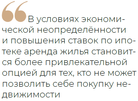 В PAN City Group подтверждают усиление интереса к аренде. Доступность собственного жилья существенно снизилась, а в таких ситуациях аренда становится более приемлемым вариантом, поскольку позволяет избежать крупных вложений и сохранить финансовую гибкость. Специалисты считают, что единственная ситуация, при которой ипотека на вторичное жильё ещё остаётся привлекательным для клиента вариантом, — когда ему необходимо улучшить жилищные условия и сумма кредита невелика.