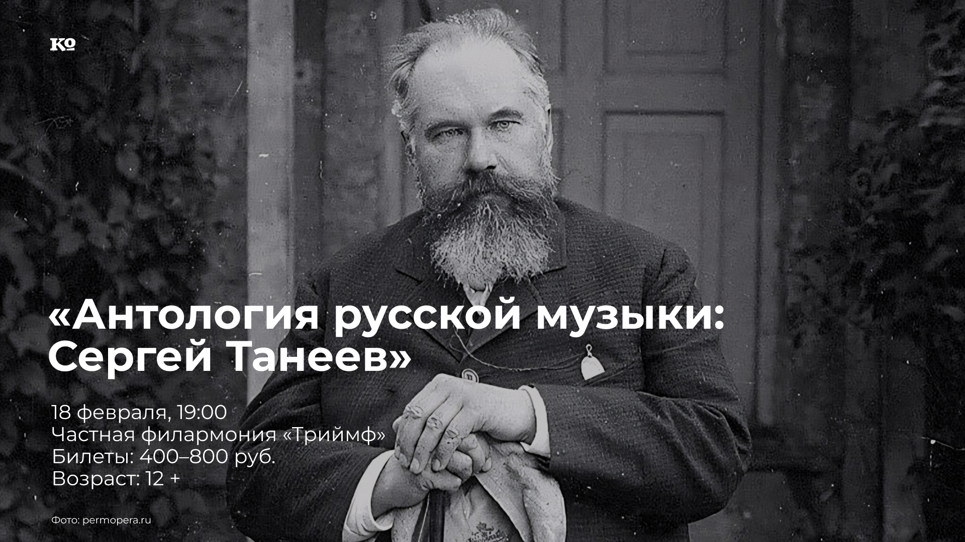 Сергей Танеев — любимый ученик Петра Ильича Чайковского, выдающийся пианист своего времени. В первом отделении концерта прозвучат его романсы на стихи Афанасия Фета, Якова Полонского, Сюлли-Прюдома, Шарля Бодлера и других поэтов. Во втором отделении — Фортепианный квинтет, одно из поздних произведений композитора. Исполнители: солистка Пермской оперы Наталья Кириллова (сопрано) и солисты оркестра Пермского театра оперы и балета: Руслан Разгуляев (фортепиано), Кристина Лебедева (скрипка), Мария Петрова (скрипка), Светлана Батурина (альт), Игорь Галкин (виолончель).