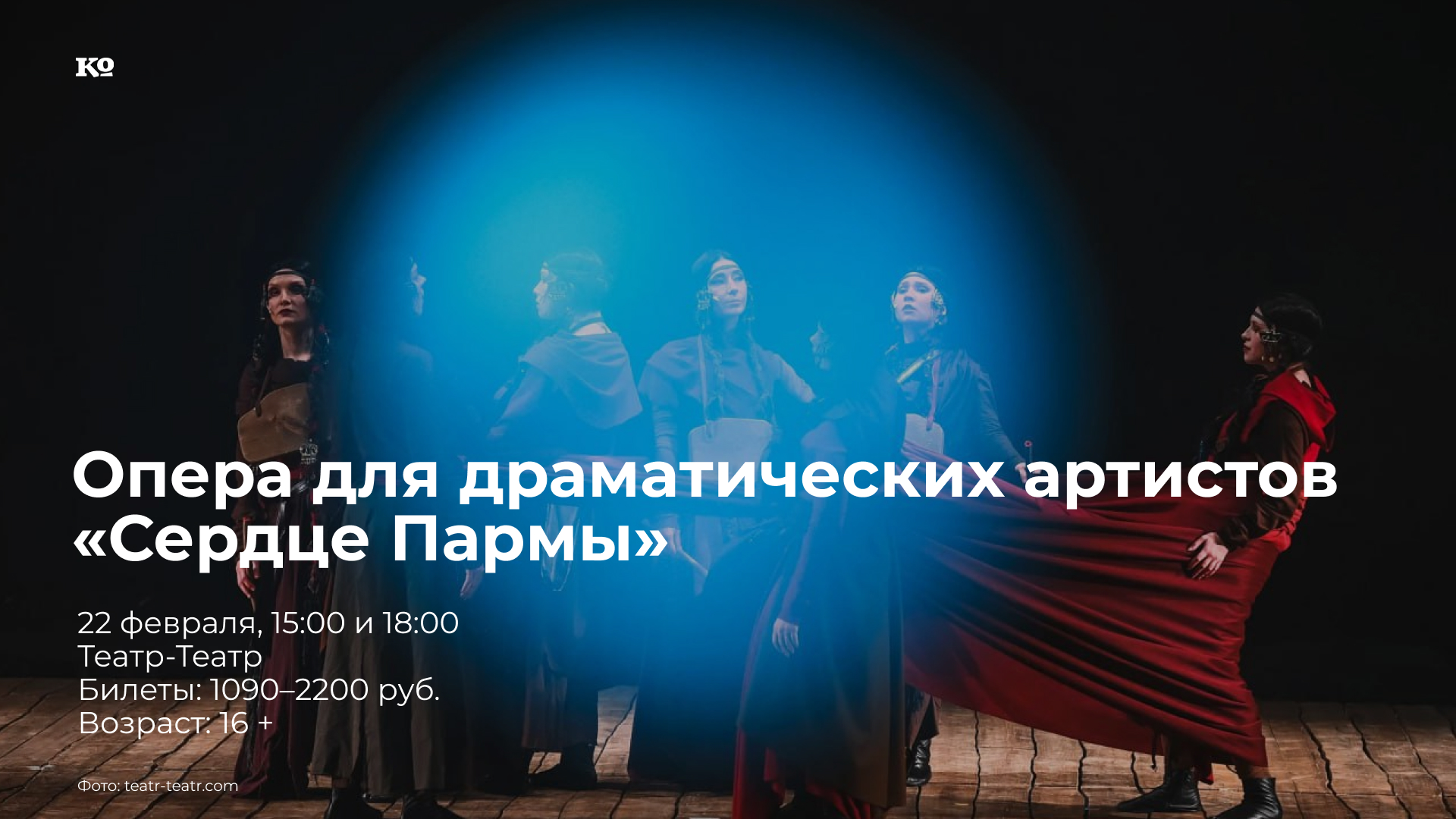 Спектакль, созданный к 300-летию Перми по мотивам одноимённого романа Алексея Иванова, представляет собой уникальный образец синтетического искусства: вокал, пластика, драматическое существование актёров органично соединяются с элементами кукольного театра и эффектной сценографией. Актёры не только поют, но и играют на специально сделанных музыкальных инструментах — пэлянах, барабанках, медных духовых, что создает самобытный художественный мир. Нарочитая театральная условность сценического действия позволяет отвлечься от романа и тем более фильма по этому произведению. Это сочинённый мир, в котором любовь не идеальна, музыка математична, а металлическая сила Пришлых проваливается в мягкие мхи и доброту Местных. Режиссёр и хореограф — Олег Глушков.