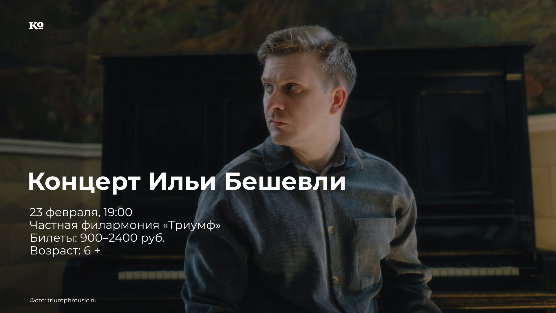 Большой концерт композитора Ильи Бешевли со струнным квинтетом, на котором будет представлен новый альбом «INRU», а также прозвучат лучшие произведения за 12 лет творчества. Илья Бешевли — композитор и музыкант родом из Сибири. Его кинематографичные, выразительные мелодии — это саундтрек к северному сиянию, к неизбежному наступлению зимы, к первым послезакатным звёздам на небе, к искрам ночного костра.