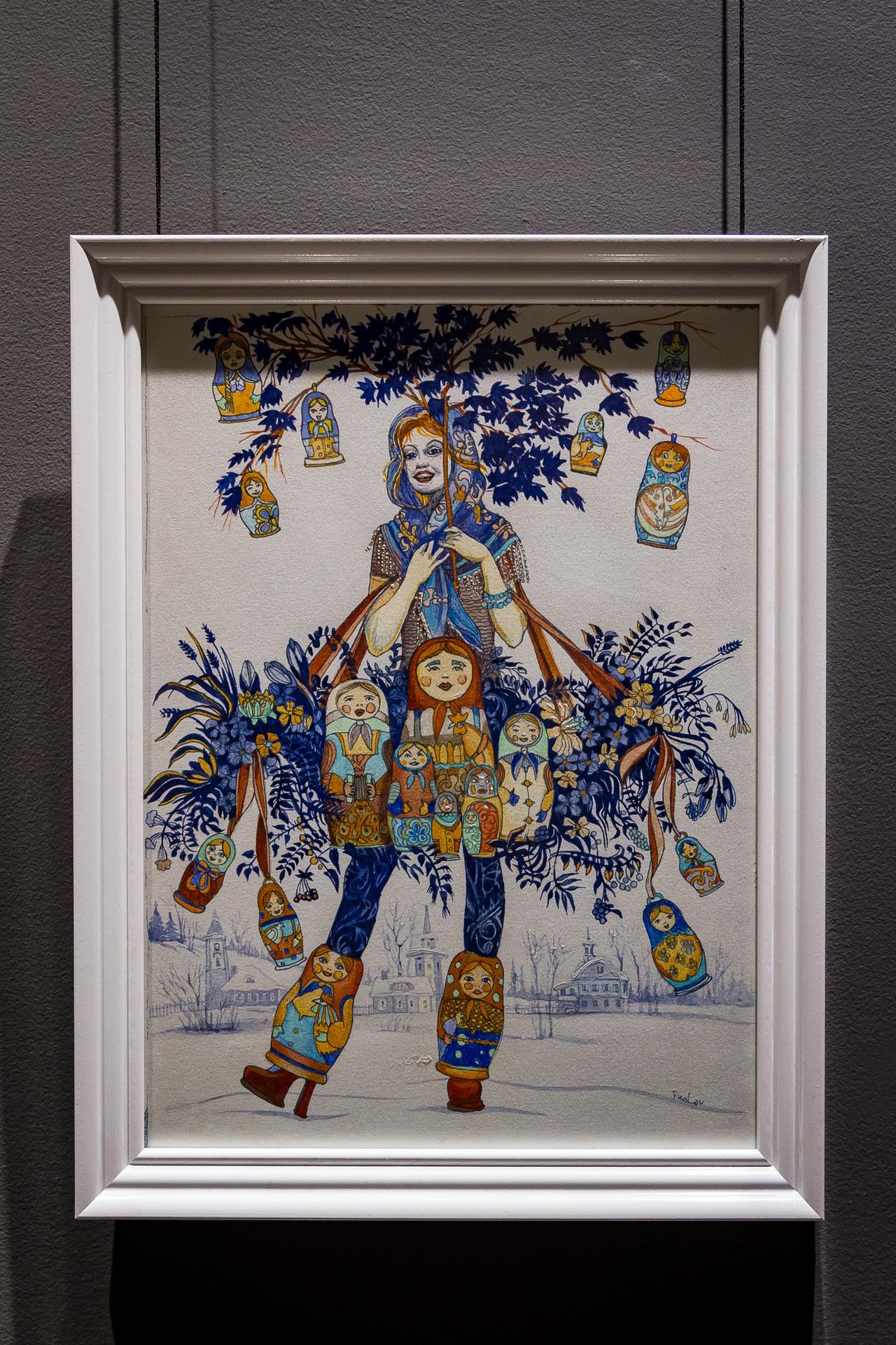 Основу экспозиции составили четыре живописных цикла — «Русская азбука», «Английская азбука», «Отрывной календарь» и «Письма друзьям». Между ними много общего. Все работы хоть и выполнены в живописных техниках, но по изобразительным свойствам принадлежат скорее к графике: здесь нет глубокой перспективы, объёмов, полутонов; так и кажется, что это иллюстрации к каким-то книгам. В известной мере это так и есть: и обе азбуки, и «Письма друзьям», и календарь на 2026 год (правда, не отрывной) можно купить в виде книжных изданий прямо тут, на выставке.