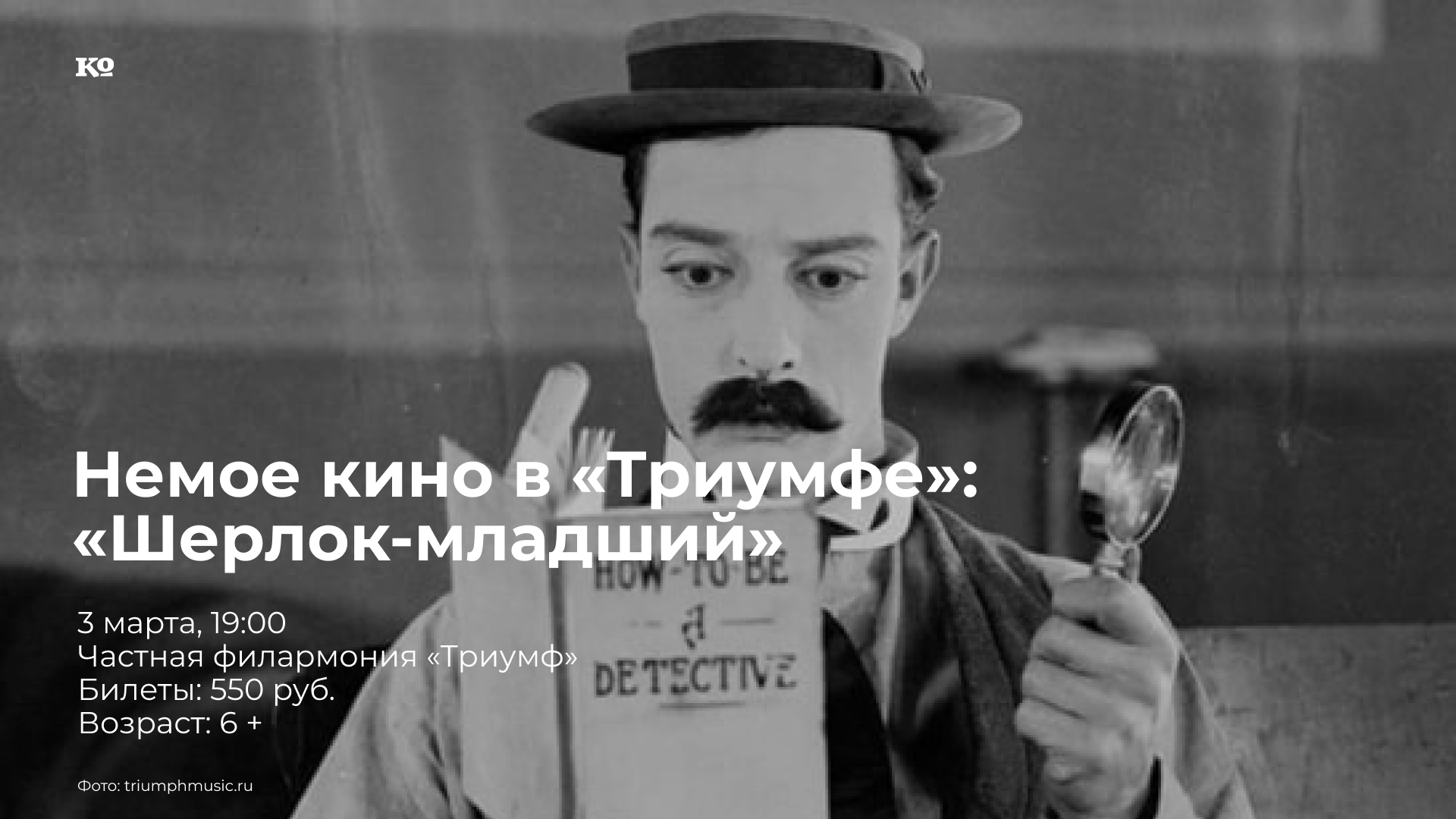 Проект «Немое кино в «Триумфе» позволяет зрителям раз в месяц прикоснуться к ушедшей эпохе известного пермского кинотеатра, погрузиться в его особенную атмосферу, познакомиться с золотыми хитами немого кинематографа и поделиться своими впечатлениями о старом кино.«Шерлок-младший» — комедия Бастера Китона, величайшего комика немого кино наравне с Чарли Чаплином. Главный герой — киномеханик, который мечтает быть знаменитым детективом, как Шерлок Холмс. Фильм будет показан под живую музыку «тапёра» — одного из лучших в Перми джазовых пианистов-импровизаторов Александра Колесникова.