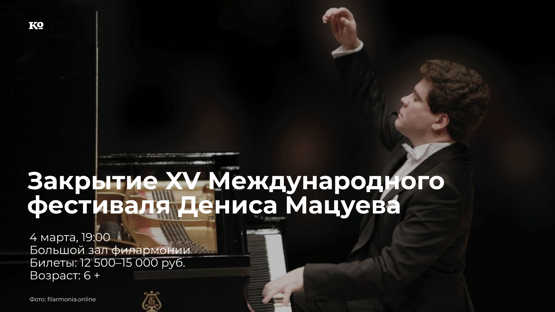 Сольный вечер Дениса Мацуева. Маэстро представит программу, составленную из любимых произведений, которые он часто исполняет на «бис»: чакона из партиты № 2 Иоганна Себастьяна Баха в переложении Ферруччо Бузони, соната № 23 («Аппассионата») Людвига ван Бетховена, «Поэтические картинки» Эдварда Грига, Соната № 8 Сергея Прокофьева. Пианист не только исполнит фортепианные хиты, но и расскажет о каждом из них и о том, что они для него значат. Это будет настоящая экскурсия по классической музыке.